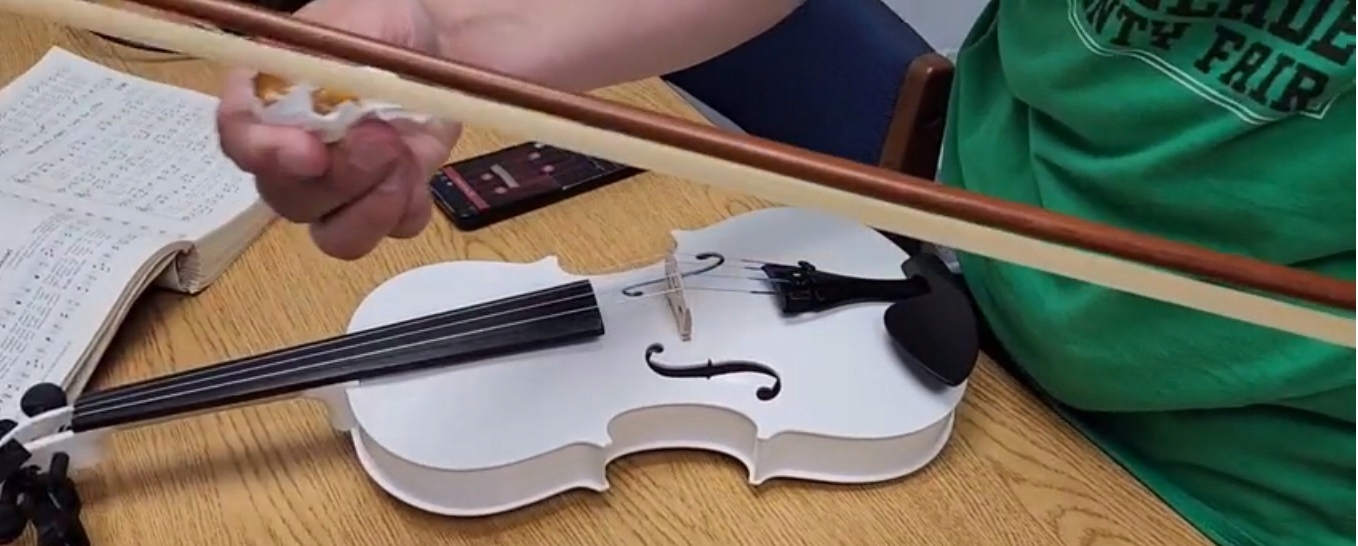 Перед игрой необходимо смазать смычок прилагаемой канифолью (входит в комплект)