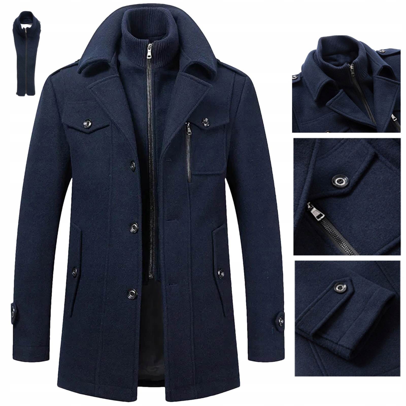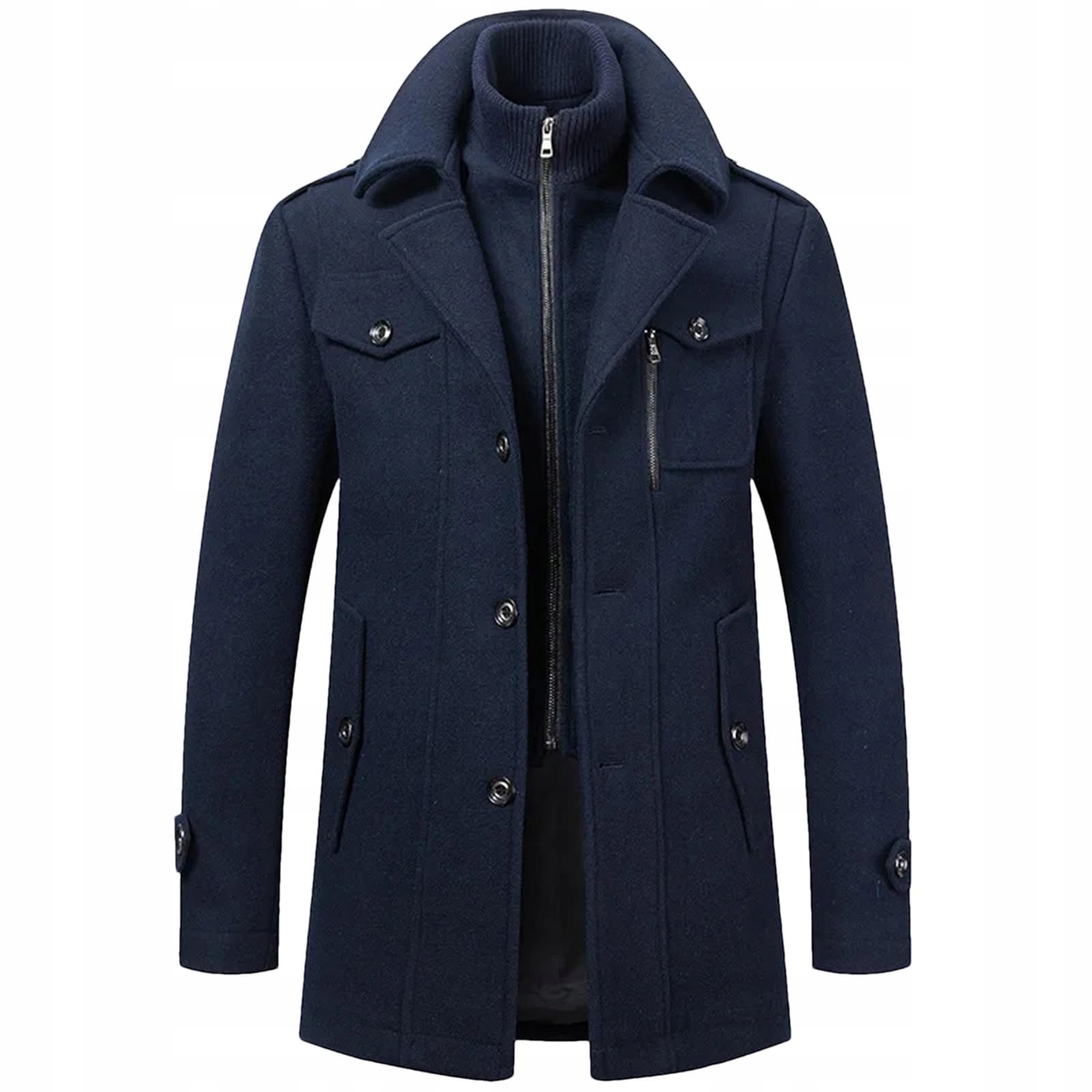 ЭЛЕГАНТНОЕ СИНОЕ МУЖСКОЕ ЗИМНЕЕ ПАЛЬТО КЛАССИЧЕСКАЯ ШЕРСТЯНАЯ КУРТКА ДЛИННАЯ XL