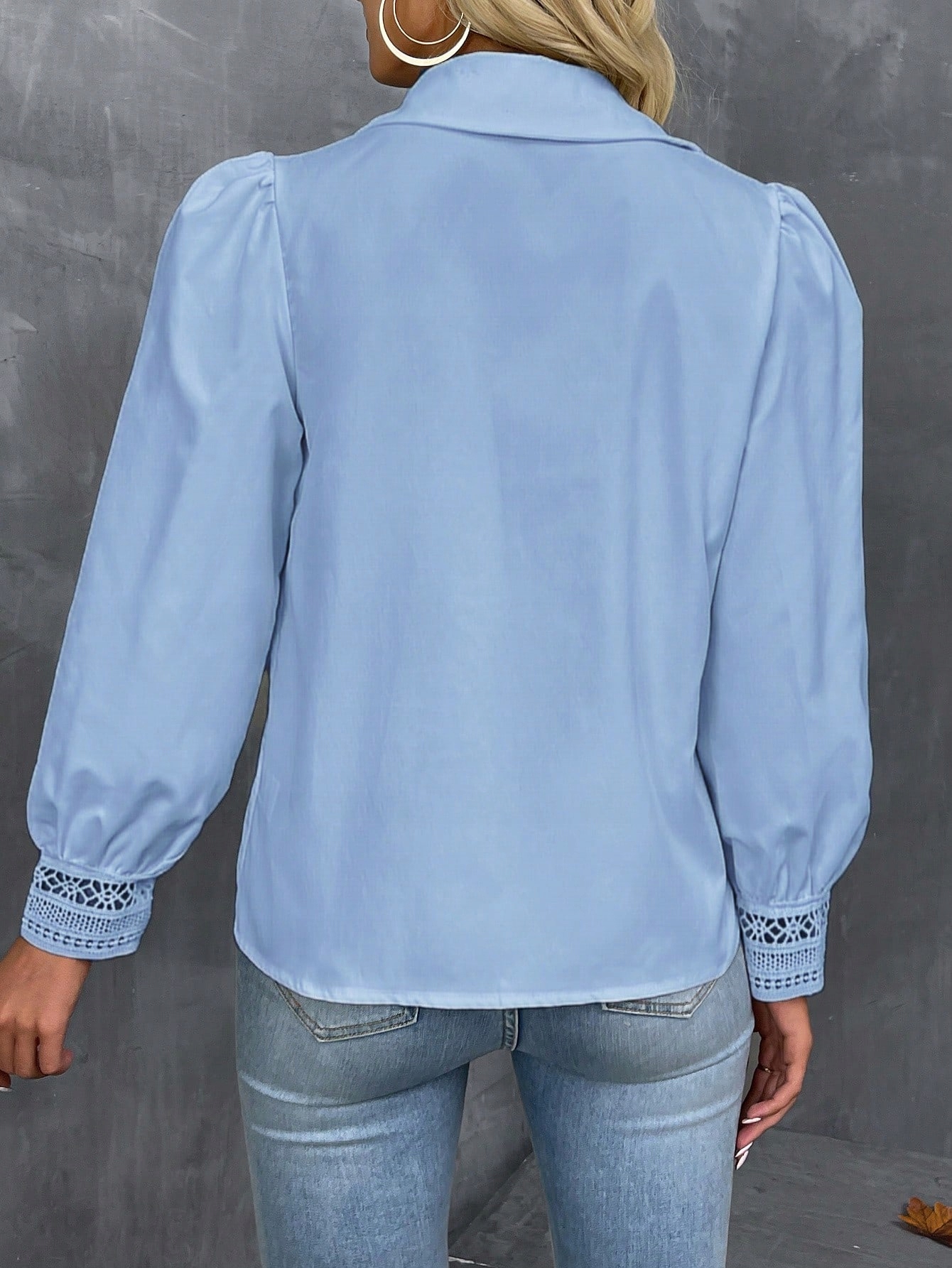 ЭЛЕГАНТНАЯ ЖЕНСКАЯ ДЕЛОВАЯ РУБАШКА, ДЛИННЫЙ РУКАВ, КРУЖЕВО, ПУГОВИНЫ