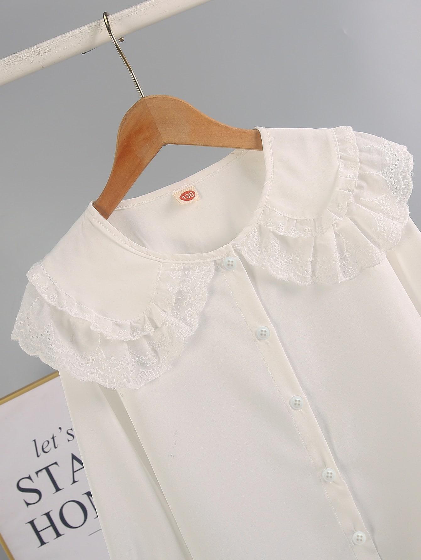 Элегантная гладкая белая рубашка декоративная вышивка воротника Shein 152
