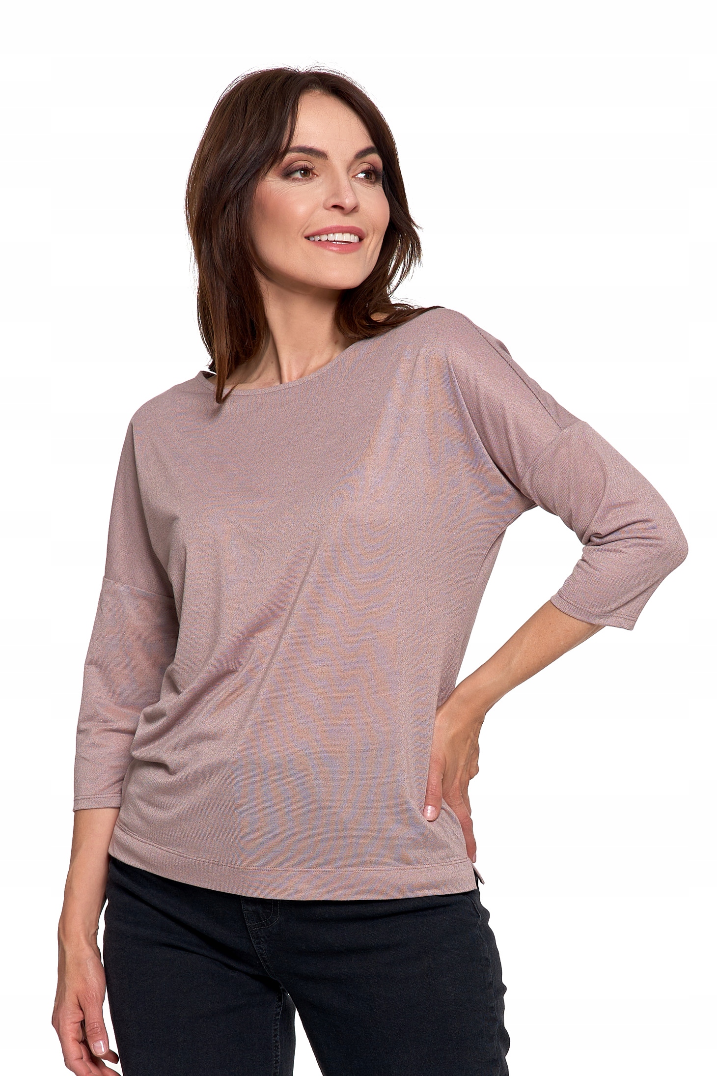 ЭЛЕГАНТНАЯ ЖЕНСКАЯ БЛУЗКА, БЛЕСТЯЩАЯ, МОДНАЯ, СВОБОДНАЯ ФУТБОЛКА MORAJ С РУКАВОМ 3/4 L