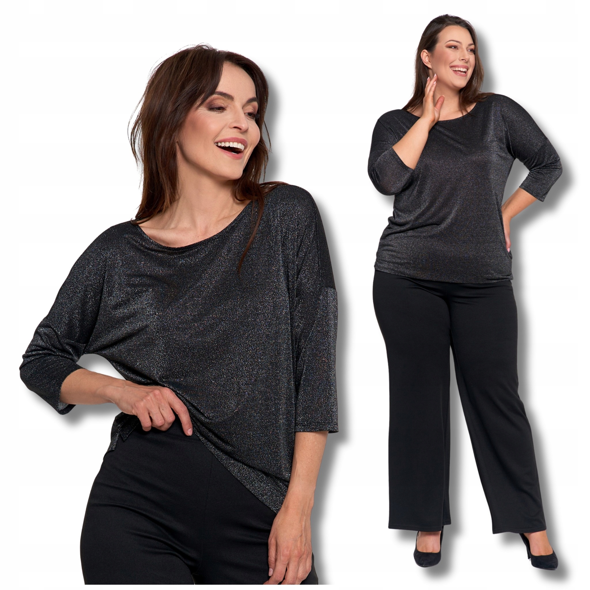 Элегантная женская блузка блестящая модная рукав 3/4 Свободный T -Fork Moraj xxl h2>