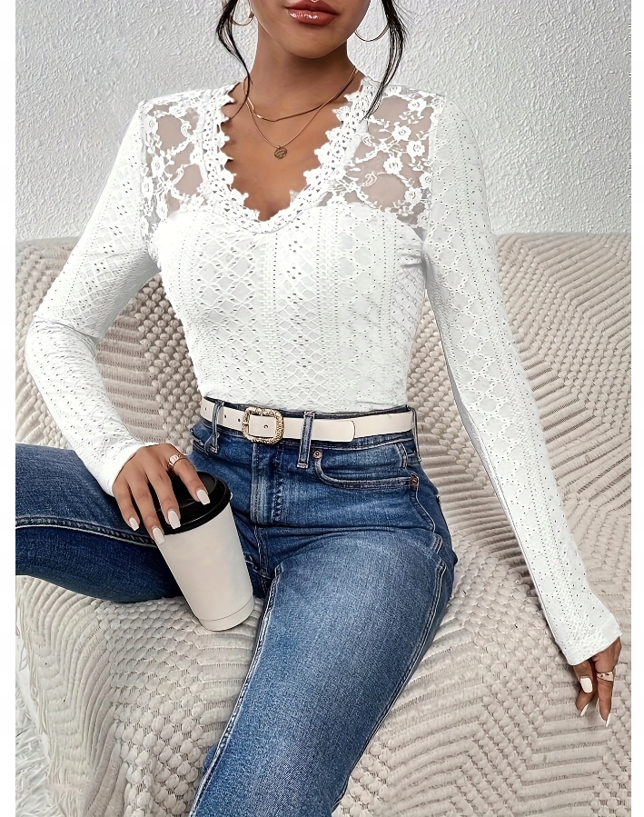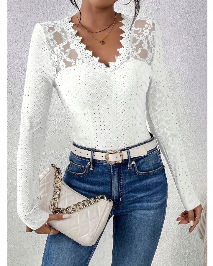 Элегантная женская блузка с кружевным кружевом с длинным рукавом.