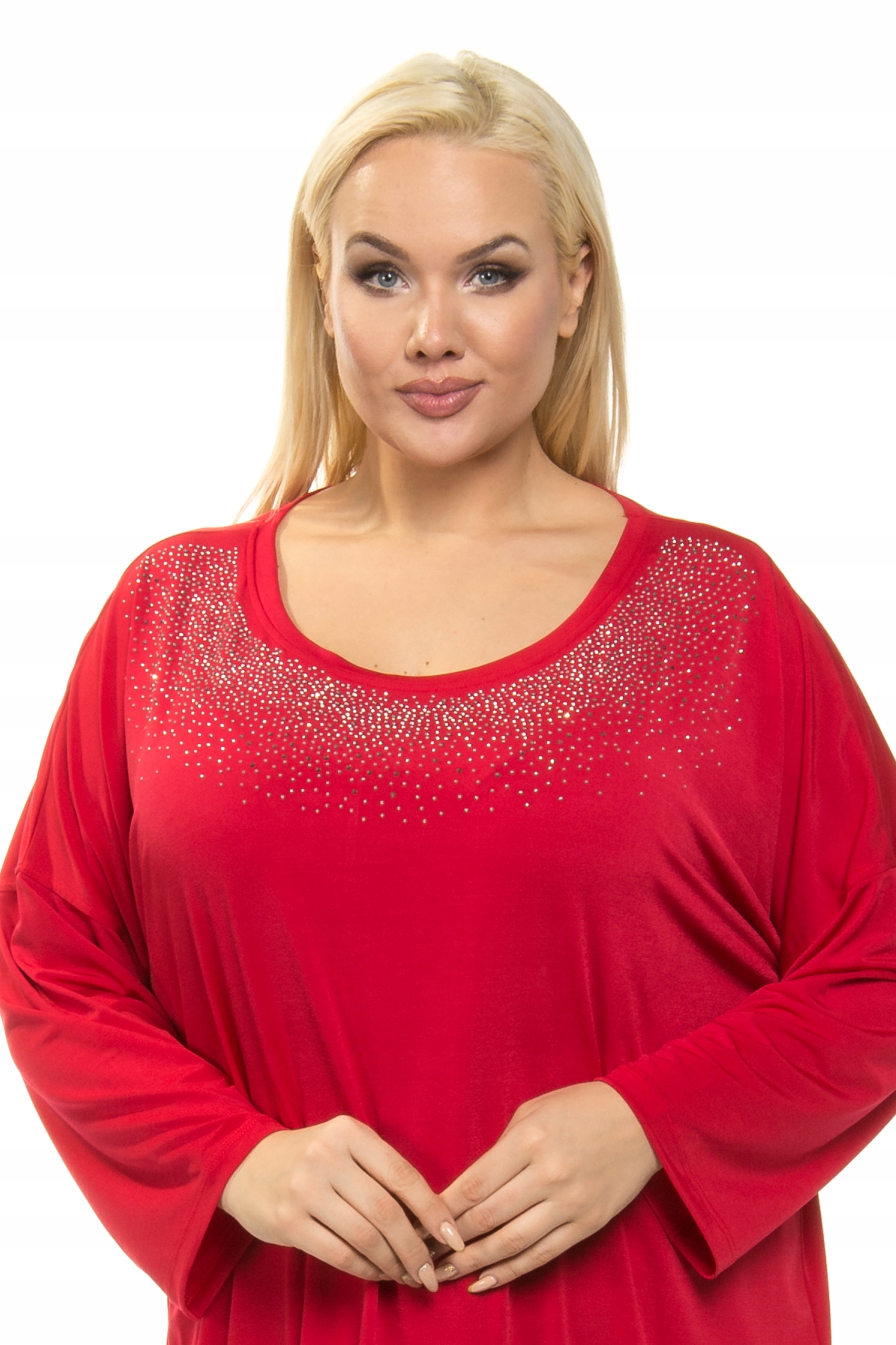 Вы ищете стильную и удобную одежду? Наше предложение - красивое платье/туника из струящегося материала модного кроя oversize, украшенное блестящей аппликацией в области декольте. Это идеальное предложение для женщин, ценящих комфорт и оригинальный стиль!