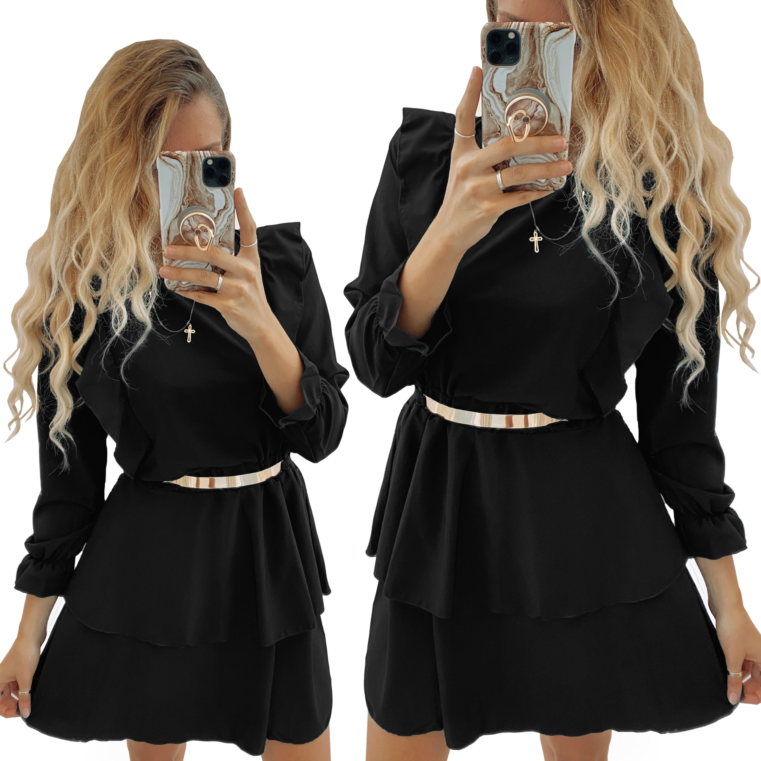 Расклешенное платье с рюшами