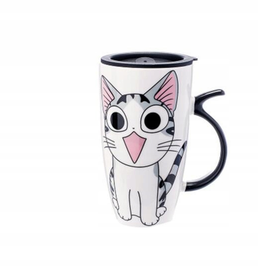Красивая и забавная керамическая кружка с крышкой из пластика.