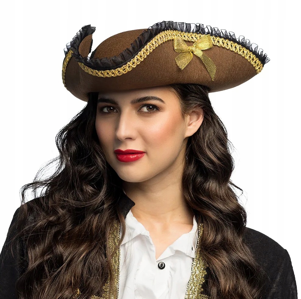Эта красивая коричневая шляпа создаст элегантный пиратский образ. Шляпа украшена золотыми и черными деталями. Идеальный аксессуар для всех, кто хочет отметить карнавал или отправиться на тематическую вечеринку в роли стильного капитана или элегантного пирата.