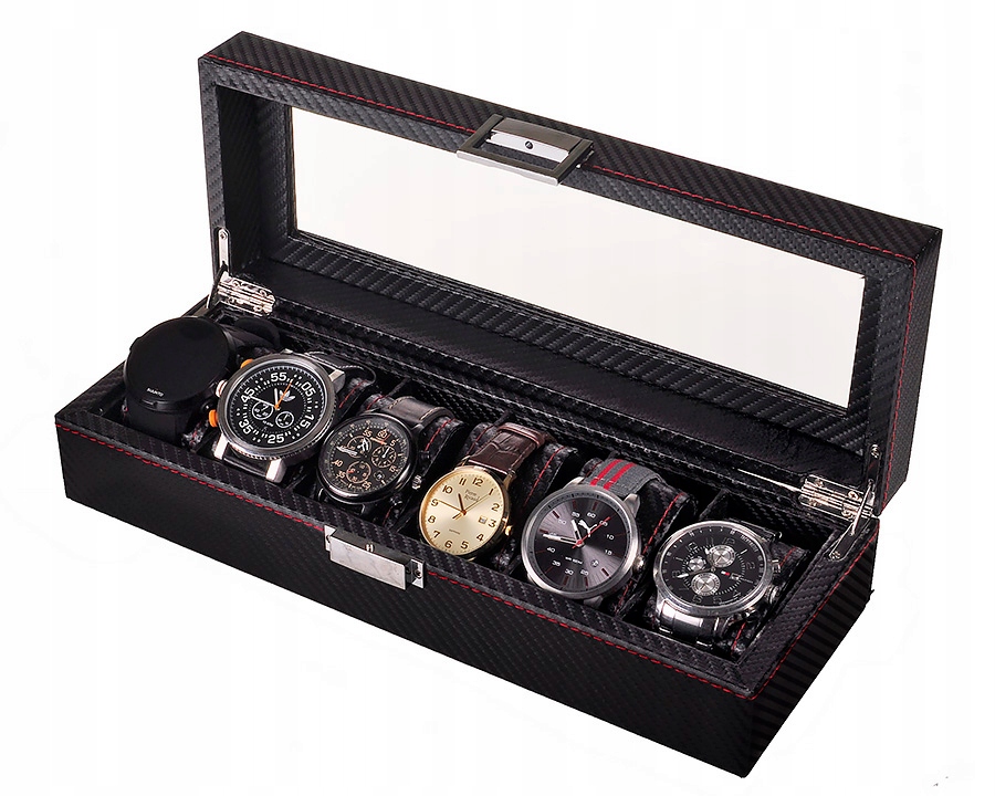 Шкатулка идеально подходит для подарка, как для мужчин, так и для женщин. Твердый материал эффективно защищает объекты посередине от царапин или пыли. Внешний слой напоминает углеродную структуру - коробка черная, слегка блестящая и очень эффективная. Красная нить строчка дает ему элегантность. Само по себе это может быть интересным и привлекательным элементом дизайна дома!