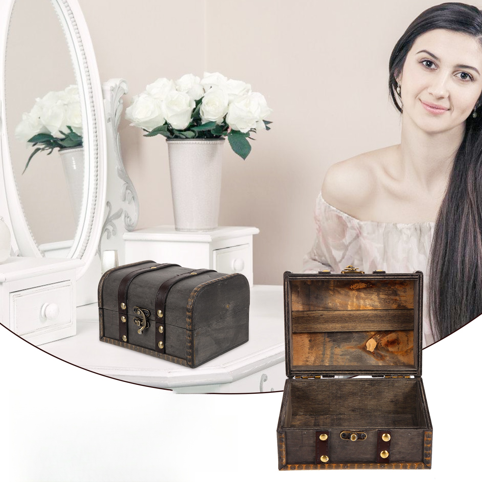 ✅i, вы все еще ищете ретро и практическую коробку для хранения ювелирных изделий для повседневного использования, этот драгоценный шкаф будет лучшим ответом для вас. Коробка для хранения ювелирных изделий сделана, простая и красивая, что приносит вам больше удобства. Это хорошо как контейнер для хранения ювелирных изделий благодаря разумному проекту