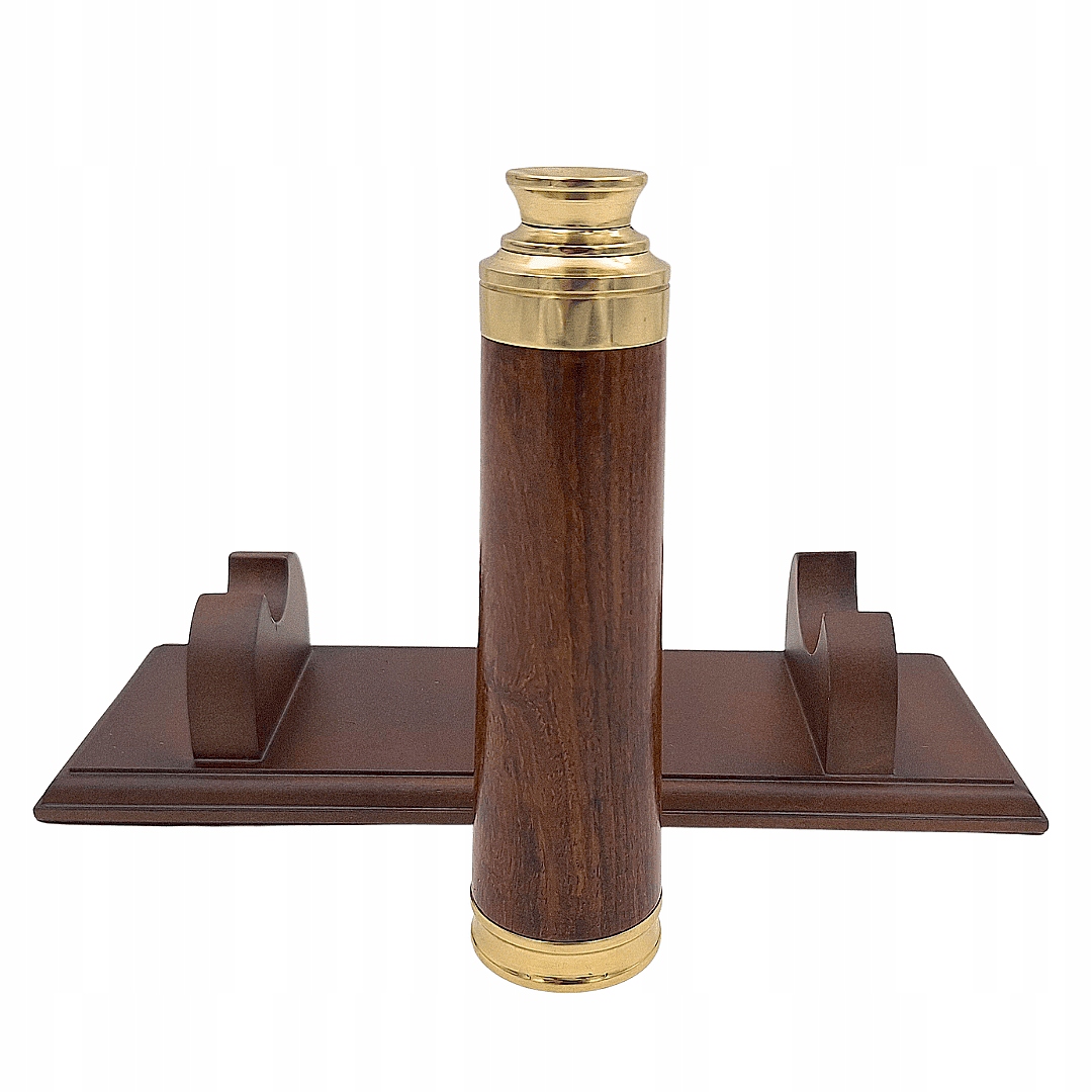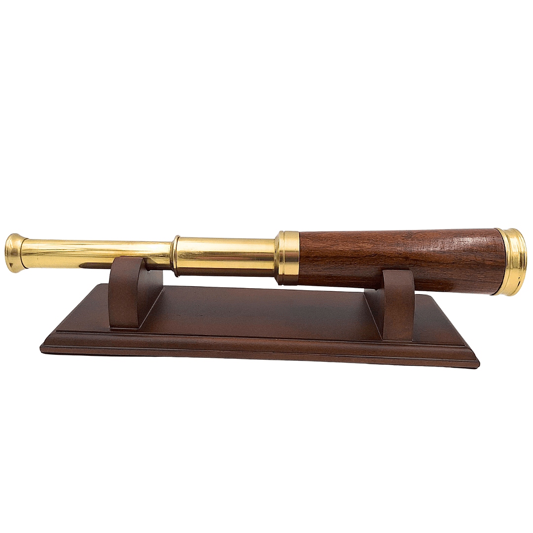 Сочетание латуни и натурального дерева хорошо вписывается в офисы, кабинеты и морские интерьеры. Установленный на деревянной раме, телескоп служит украшением стола или мебели и станет сдержанным подарком моряку, капитану или любителю мореплавания.