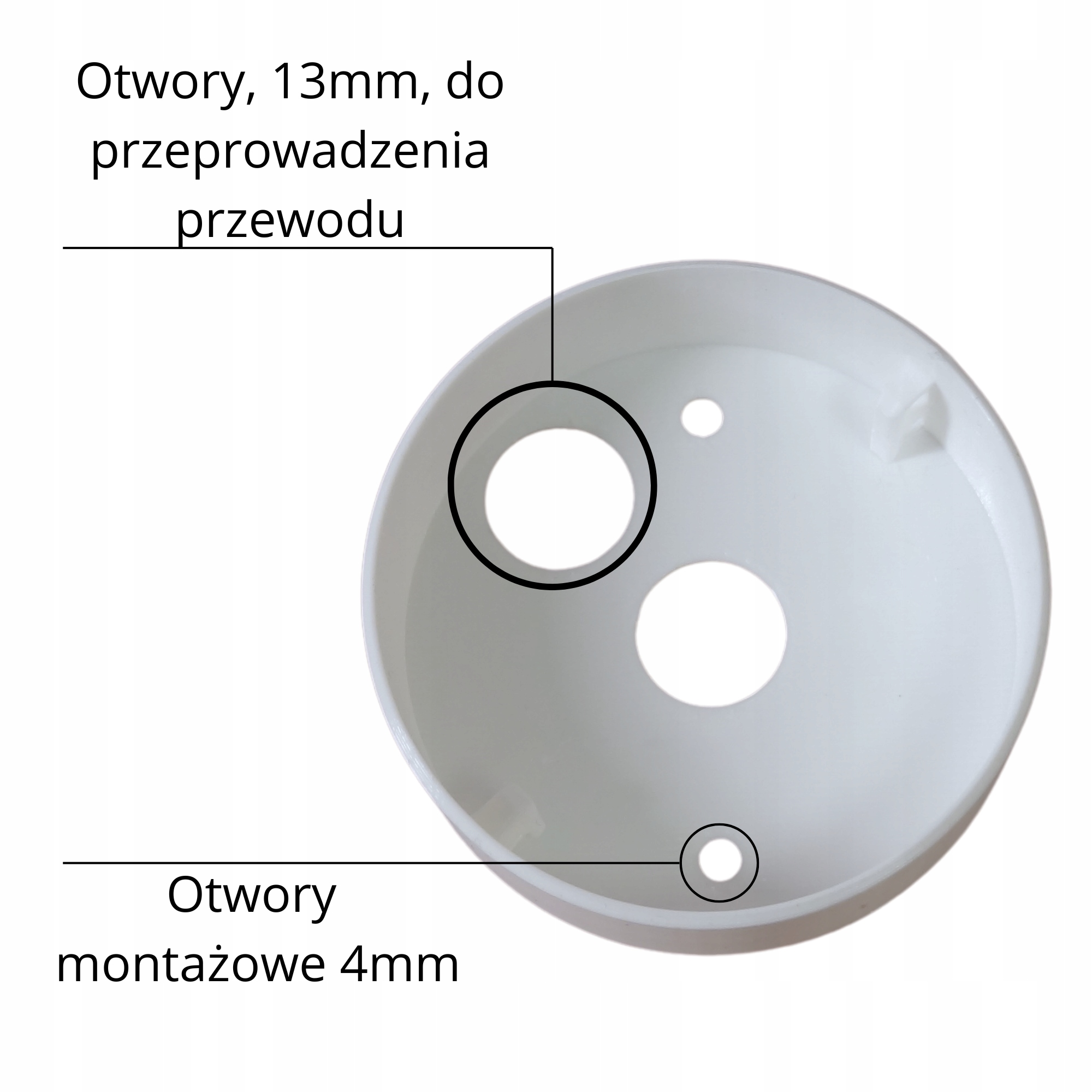 - Простая конфигурация: два отверстия диаметром 13 мм позволяют легко прокладывать кабели, а два отверстия диаметром 4 мм обеспечивают устойчивое крепление коробки к стене.