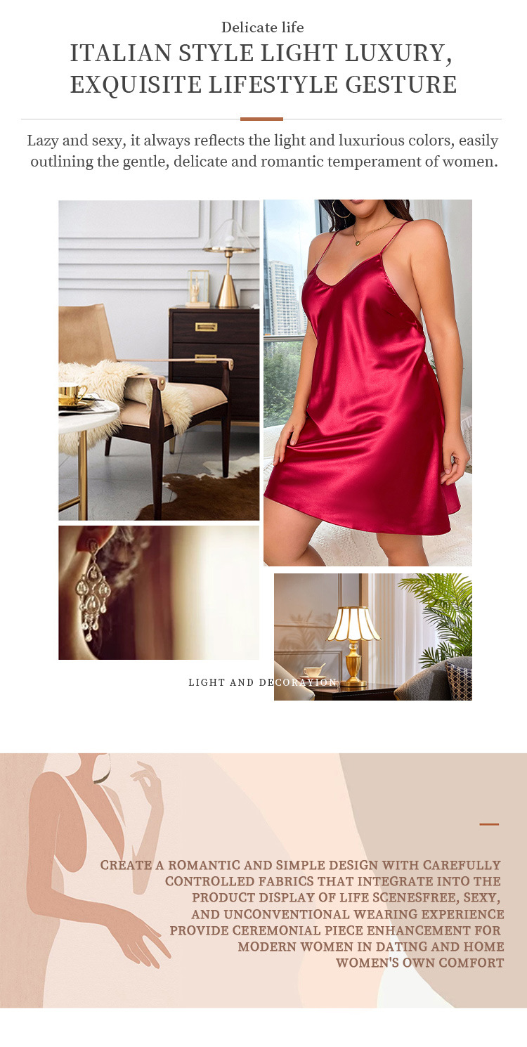 Сексуальная атласная ночная сорочка с женским халатом – красный комплект больших размеров