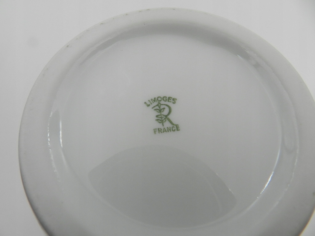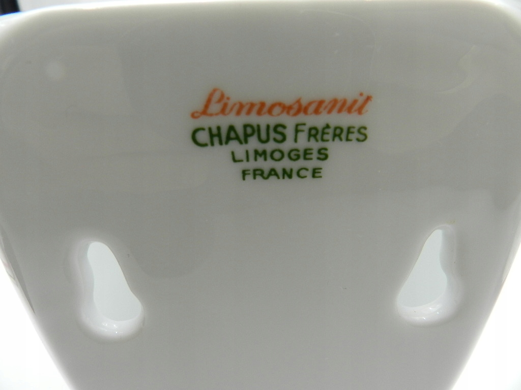 Зеленый знак Limioges France, использовавшийся в 1950-х годах. На оборотной стороне вазы дополнительная маркировка — Limosanit Chapus Freres Limoges France.