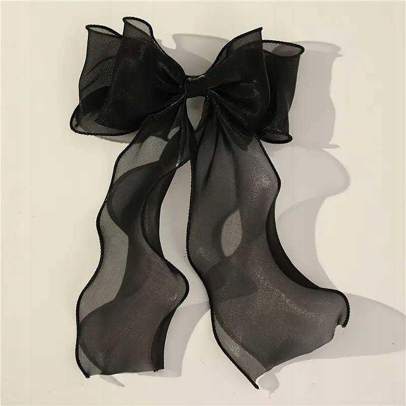 Черный бант для волос из легкого воздушного шифона – элегантный аксессуар, который ненавязчиво подчеркнет любую прическу.