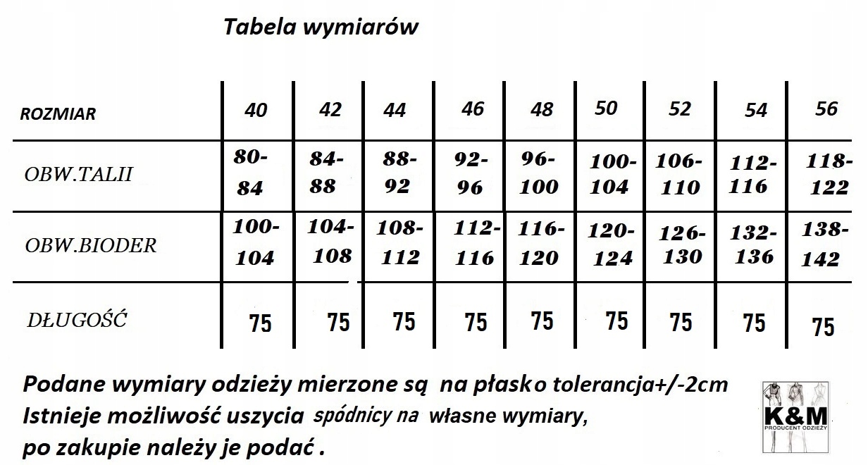 Ниже представлена размерная сетка женской одежды K&M Krawiectwo. Размеры, указанные в таблице, измерены в плоском виде, первый размер не растягивается. .При покупке товара сравните наши размеры со своими.Проверенный способ - замерить платье, блузку или юбку и сохранить размеры на компьютере.Теперь вы сможете быстро сделать правильный выбор и избежать разочарования.