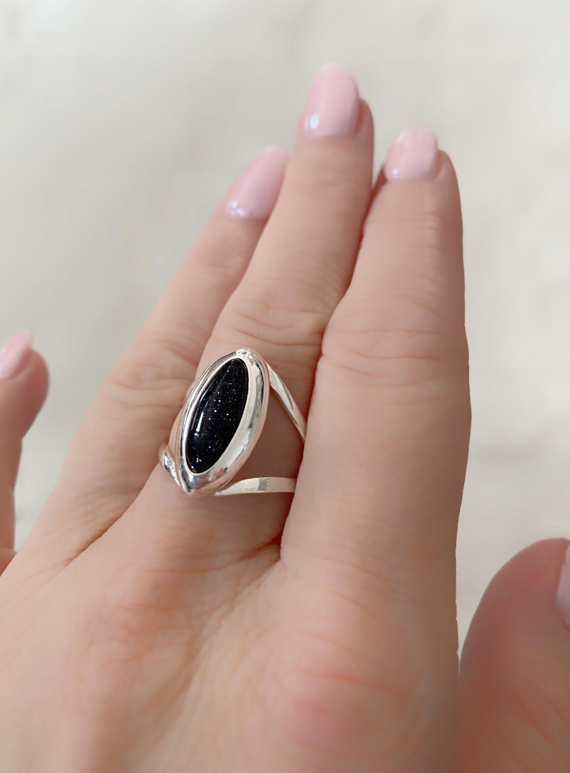 ЭЛЕГАНТНОЕ СЕРЕБРЯНОЕ КОЛЬЦО С НОЧЬЮ КАИРА, размер 16