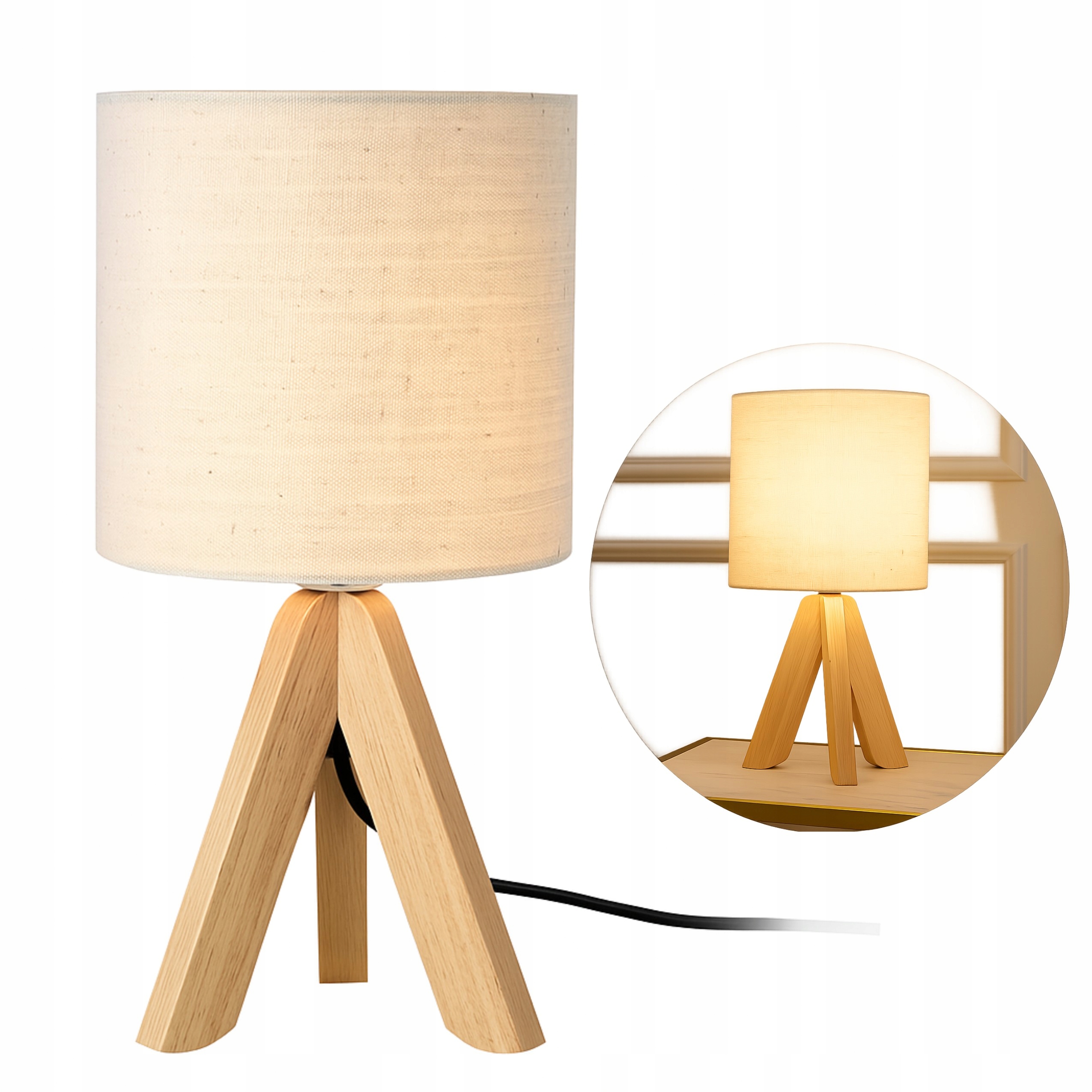 ЕЛЕГАНТНА СУЧАСНА З КАБЕЛЕМ НІЧНА ЛАМПА БЕЖЕВОГО КОЛЬОРУ ТРИПОД
