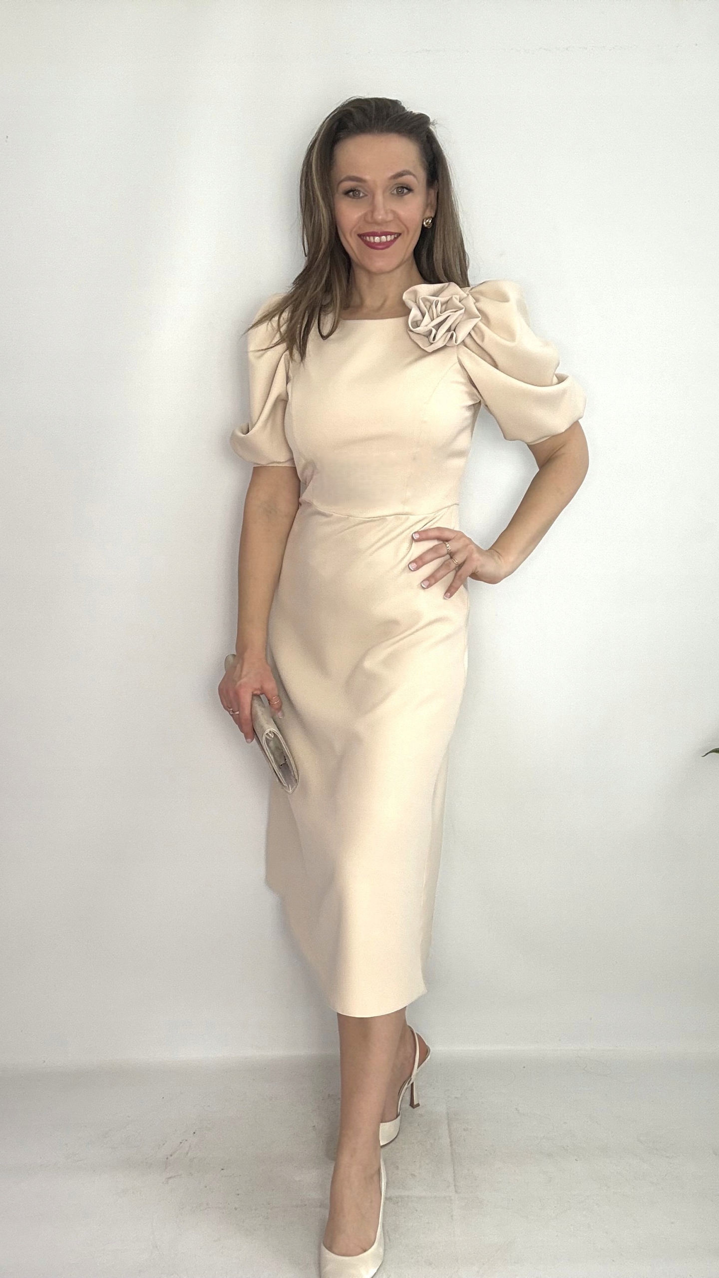 Элегантное миди -платье с пухлыми рукавами для причастия свадебная роза порошок R42