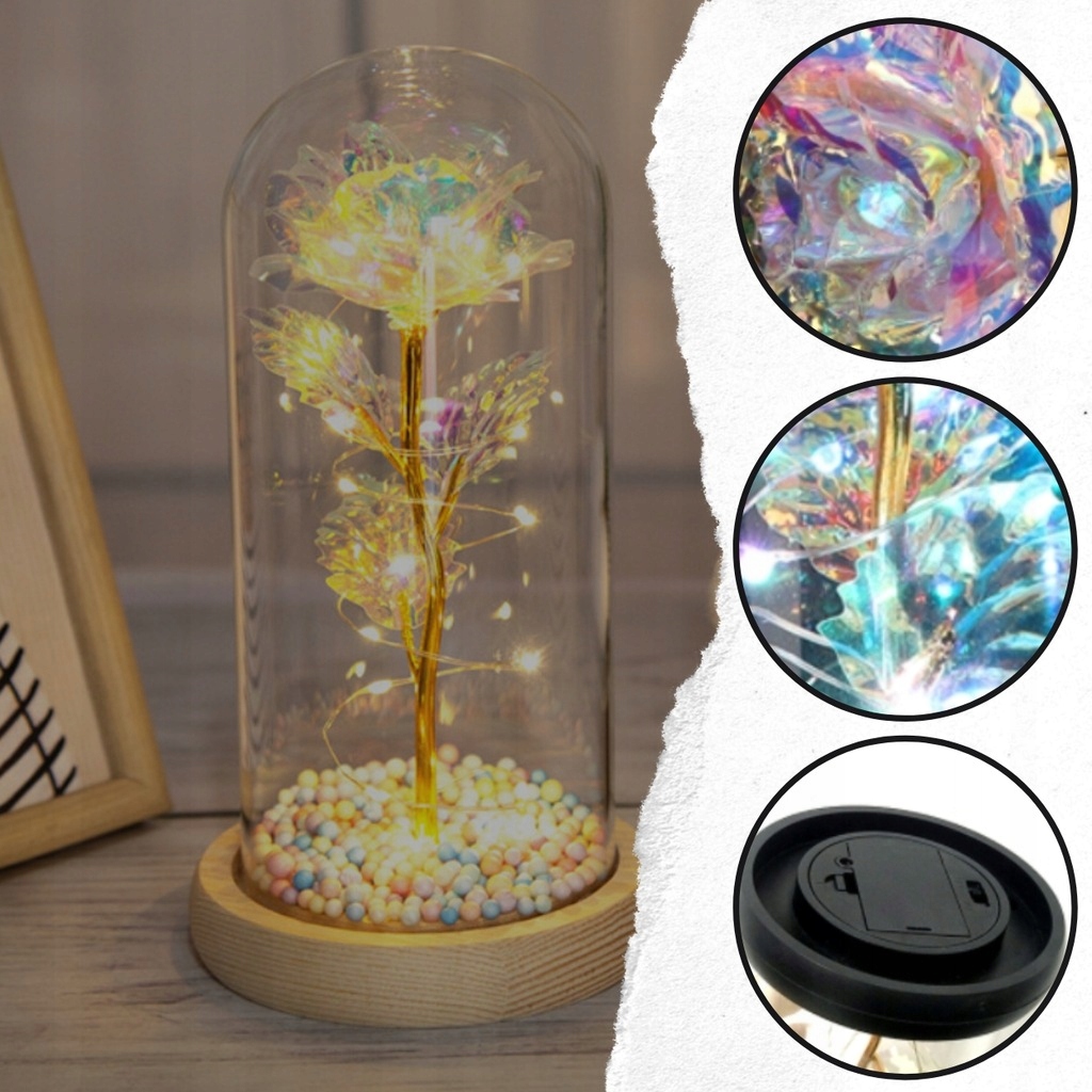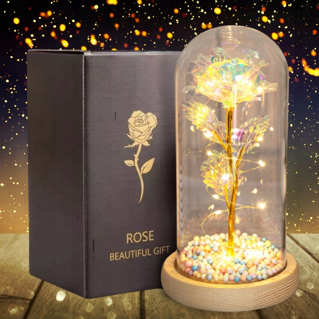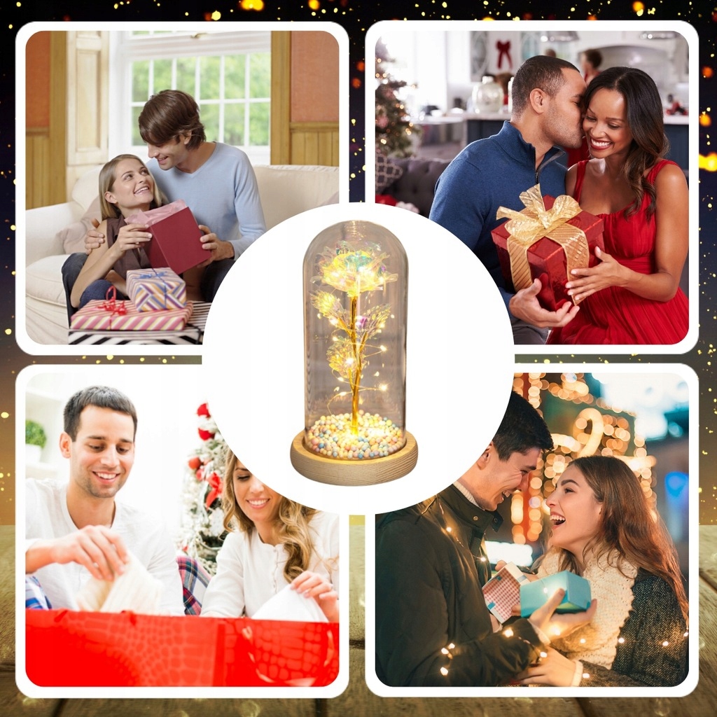 ЕЛЕГАНТНА Вічна троянда в золотому склі, світлодіодний подарунок, що світиться, Різдво до дня народження