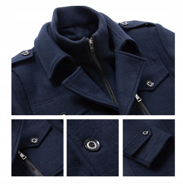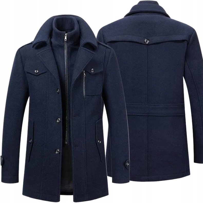 ЭЛЕГАНТНОЕ СИНОЕ МУЖСКОЕ ЗИМНЕЕ ПАЛЬТО КЛАССИЧЕСКАЯ ШЕРСТЯНАЯ ДЛИННАЯ КУРТКА XXL