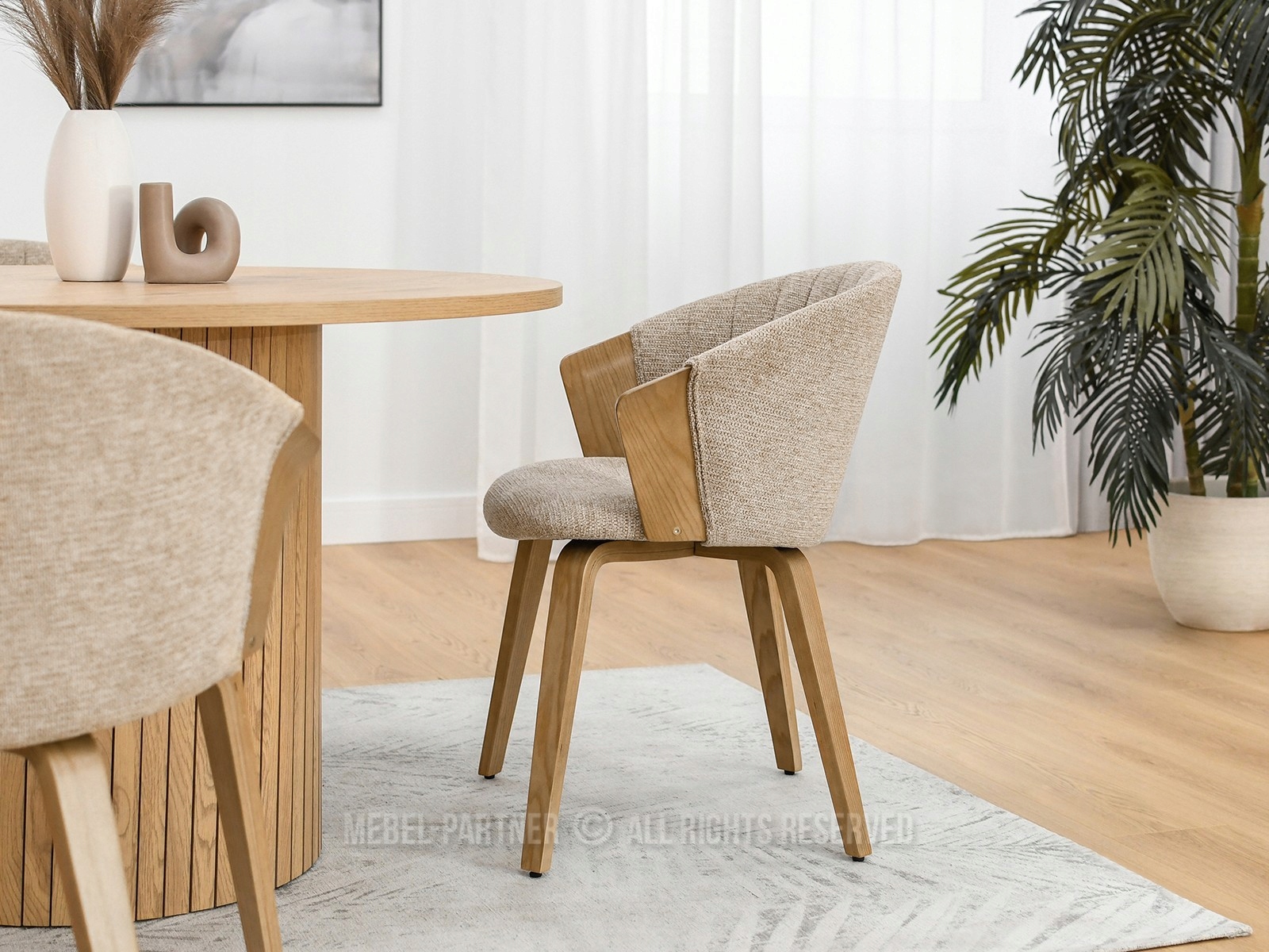 Beige Guzman Clail - это гармоничное сочетание современного дизайна и натуральных материалов, идеально подходящих для интерьеров в скандинавском или минималистском стиле. Характерная вертикальная строчка на спине добавляет отчетливый, современный акцент. Сиденье ведра обеспечивает идеальную посадку и комфорт. Ключевые особенности этого стула:
