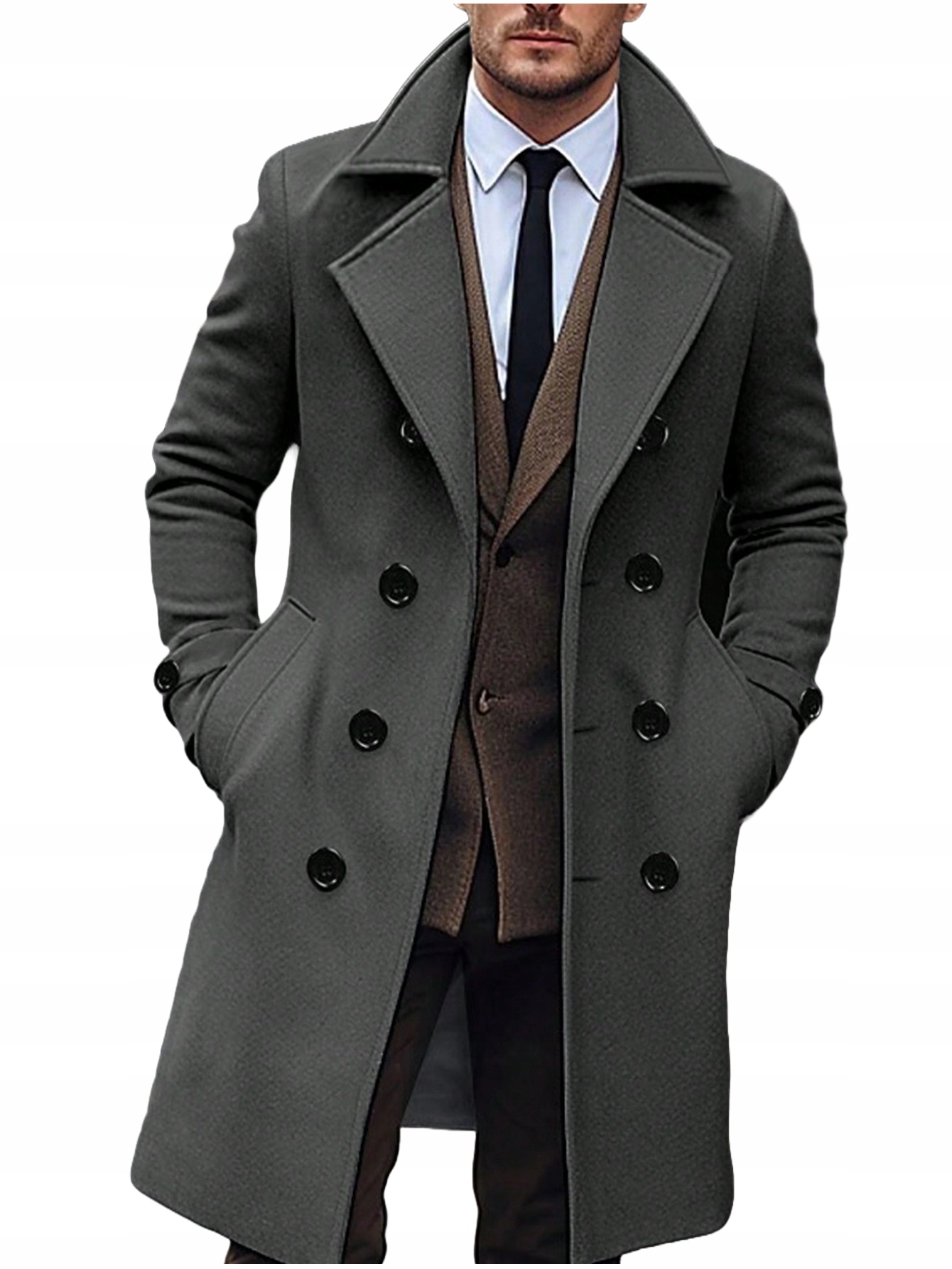 ЭЛЕГАНТНОЕ МОДНОЕ МУЖСКОЕ ОСЕНЬ-ЗИМНЕЕ ДЛИННОЕ ДВОЙНОЕ ПАЛЬТО