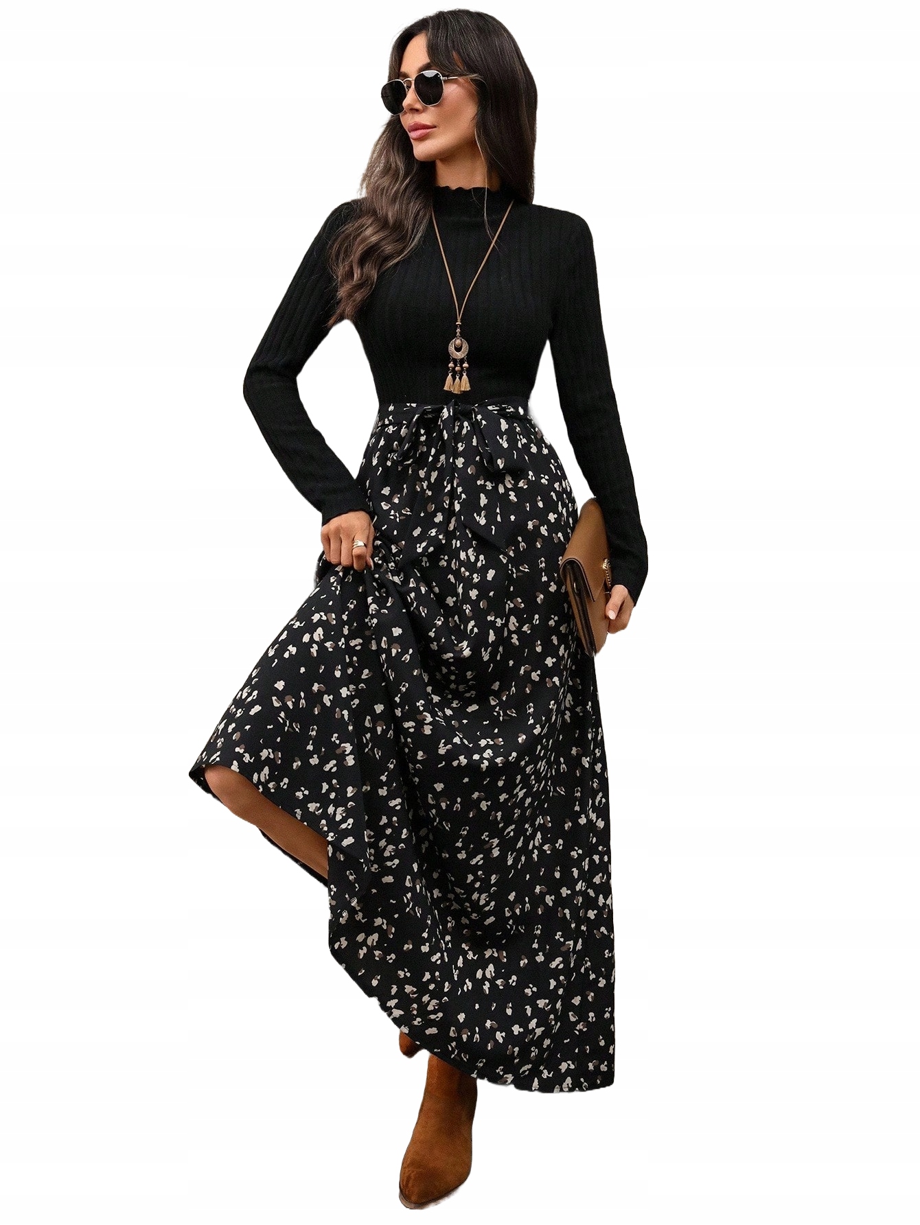 ЕЛЕГАНТНЕ ПЛАТТЯ З ДОВГИМ РУКАВОМ ОСІННЯ ВІЛЬНА МАКСІ