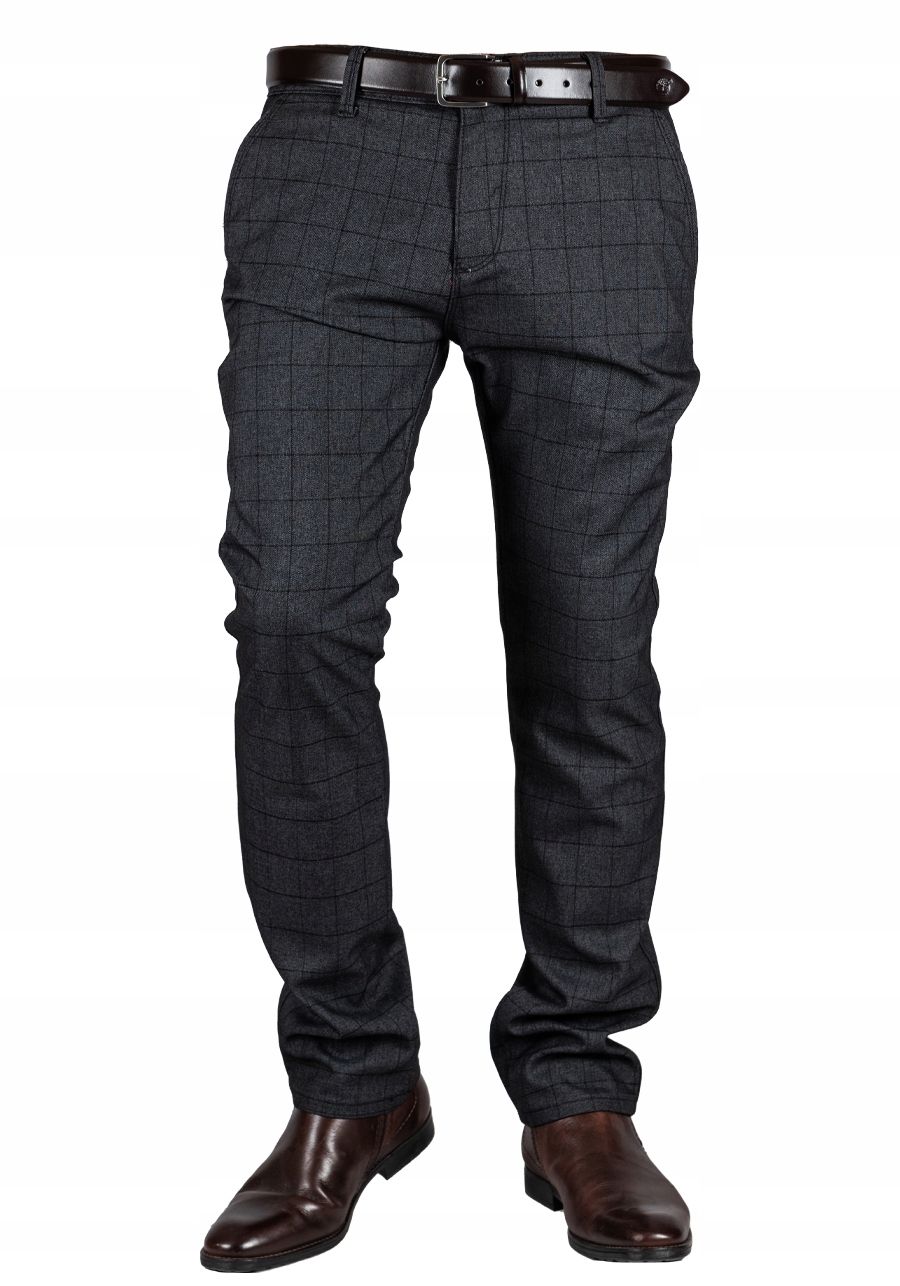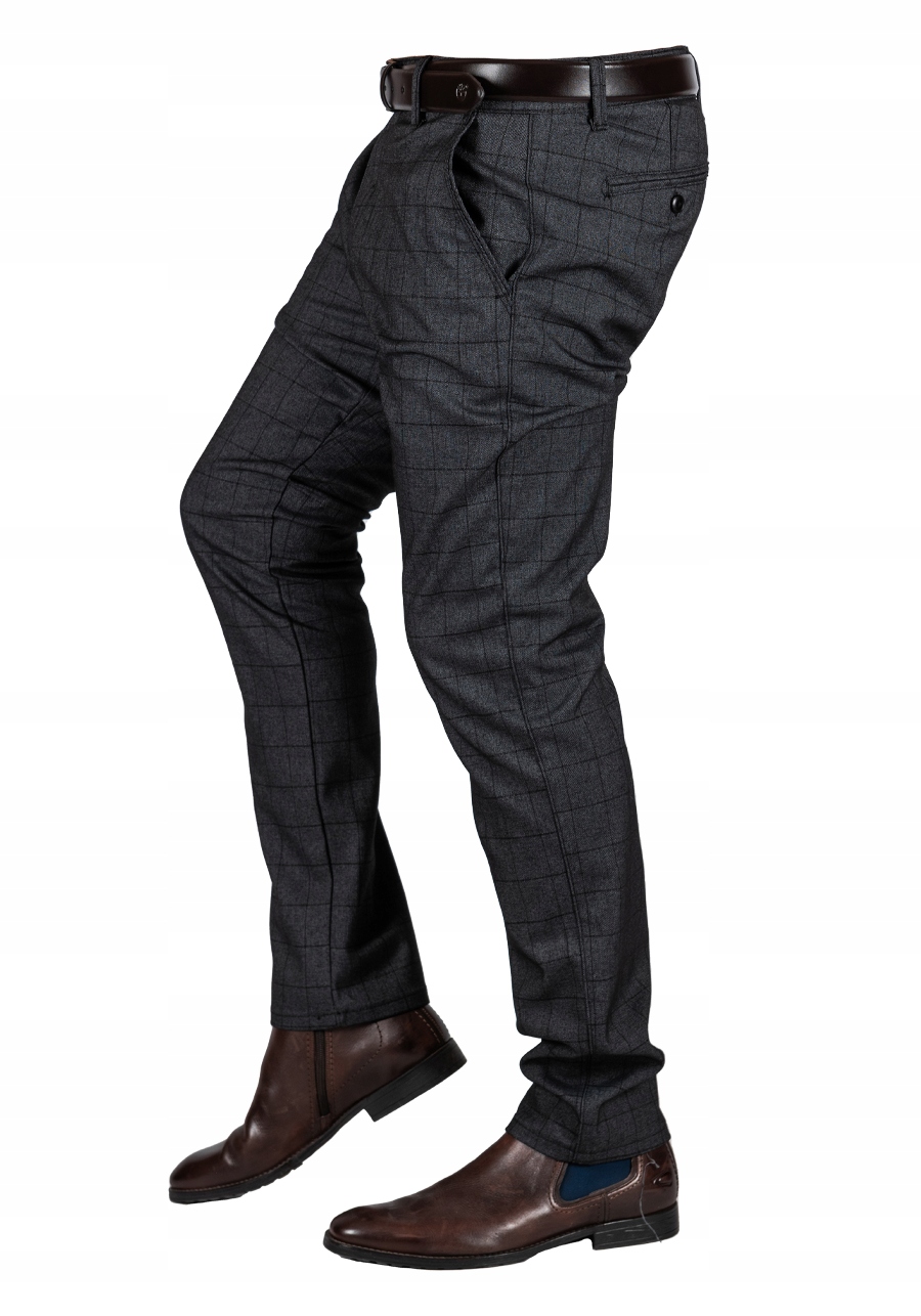 - Черные элегантные чиносы в клетку – брюки из легкого материала классического кроя с добавлением клетчатого рисунка в черных оттенках.
