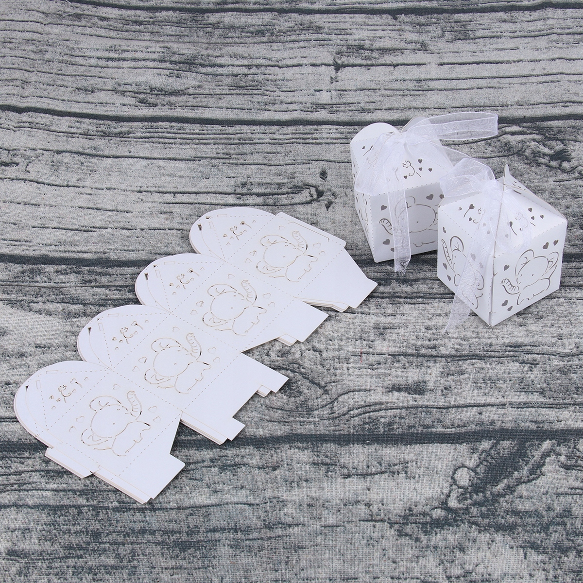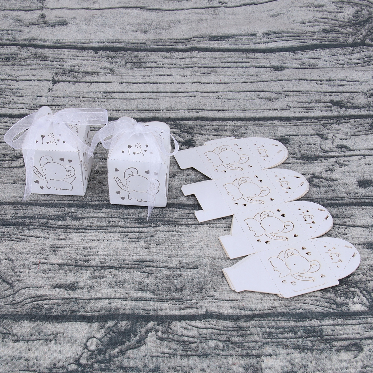 Элегантные коробки сладости с мотивом слона для детского душа (белый)