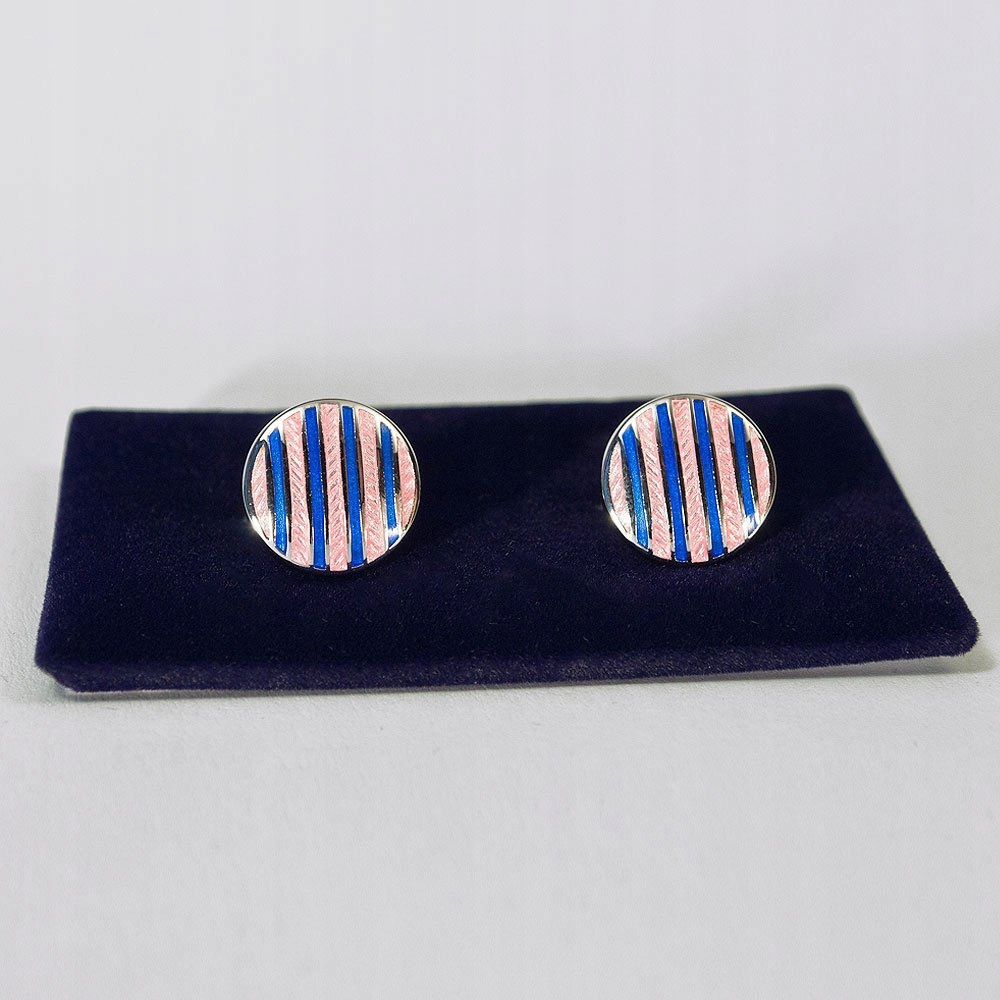 Элегантные запонки круглые манжеты с розовыми синими полосами (код продукта: C138D) h1>