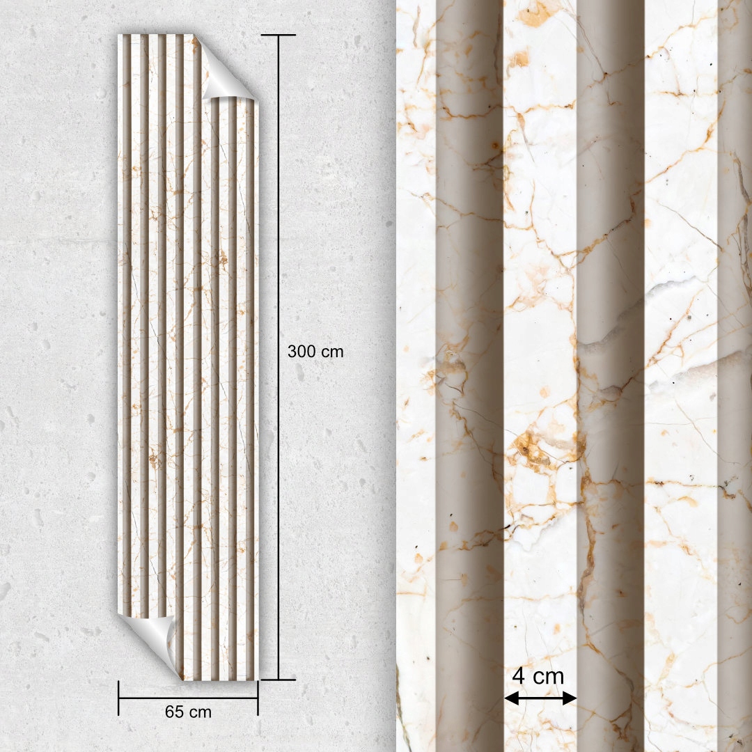 ЕЛЕГАНТНІ ШПАЛЕРИ СВІТЛО-БІЛИЙ МАРМУР ВЕРТИКАЛЬНІ СМУГИ ЯК 3D ЛАМПИ 4145al