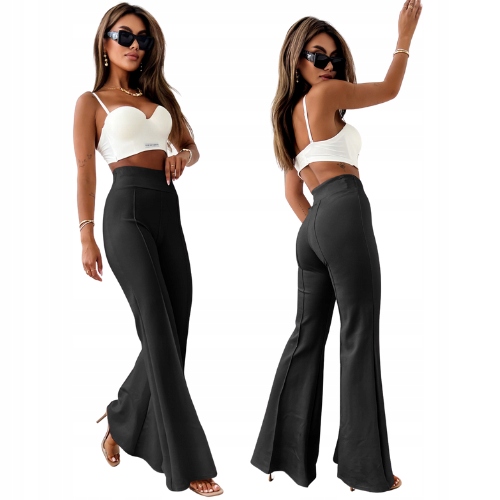 ЭЛЕГАНТНЫЕ БРЮКИ КОЛОКОЛЬЧИК, ШИРОКИЕ, ФОРМИРОВАНИЕ БРЮКИ - ЧЕРНЫЕ