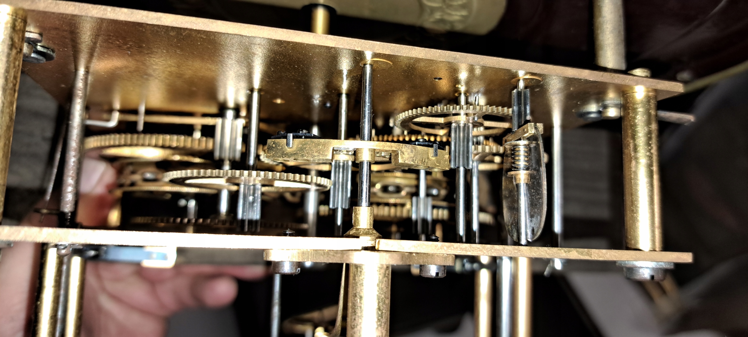 ОРИГИНАЛЬНЫЙ ЦИФЕРБЛАТ, ОЧЕНЬ РАЗБОРЧИВЫЙ, ОЧЕНЬ ХОРОШО СОХРАНЯЩИЙСЯ, ВЕСЫ И МАЯТНИК В ОЧЕНЬ ХОРОШЕМ СОСТОЯНИИ