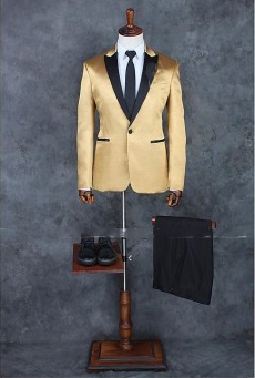 Елегантний атласний золотий чоловічий костюм