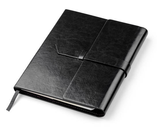 VASCO — элегантный блокнот формата А5 с классической обложкой из эко-кожи. В блокноте 80 листов бумаги в линейку и практичная закладка на ленте. Внутри обложки есть место для трех визиток, ручки и USB-накопителя. Обложка не прикреплена к блоку блокнота стационарно, а скользит по первым страницам, что дает возможность заменить блокнот. Блокнот закрывается ремешком из эко-кожи.