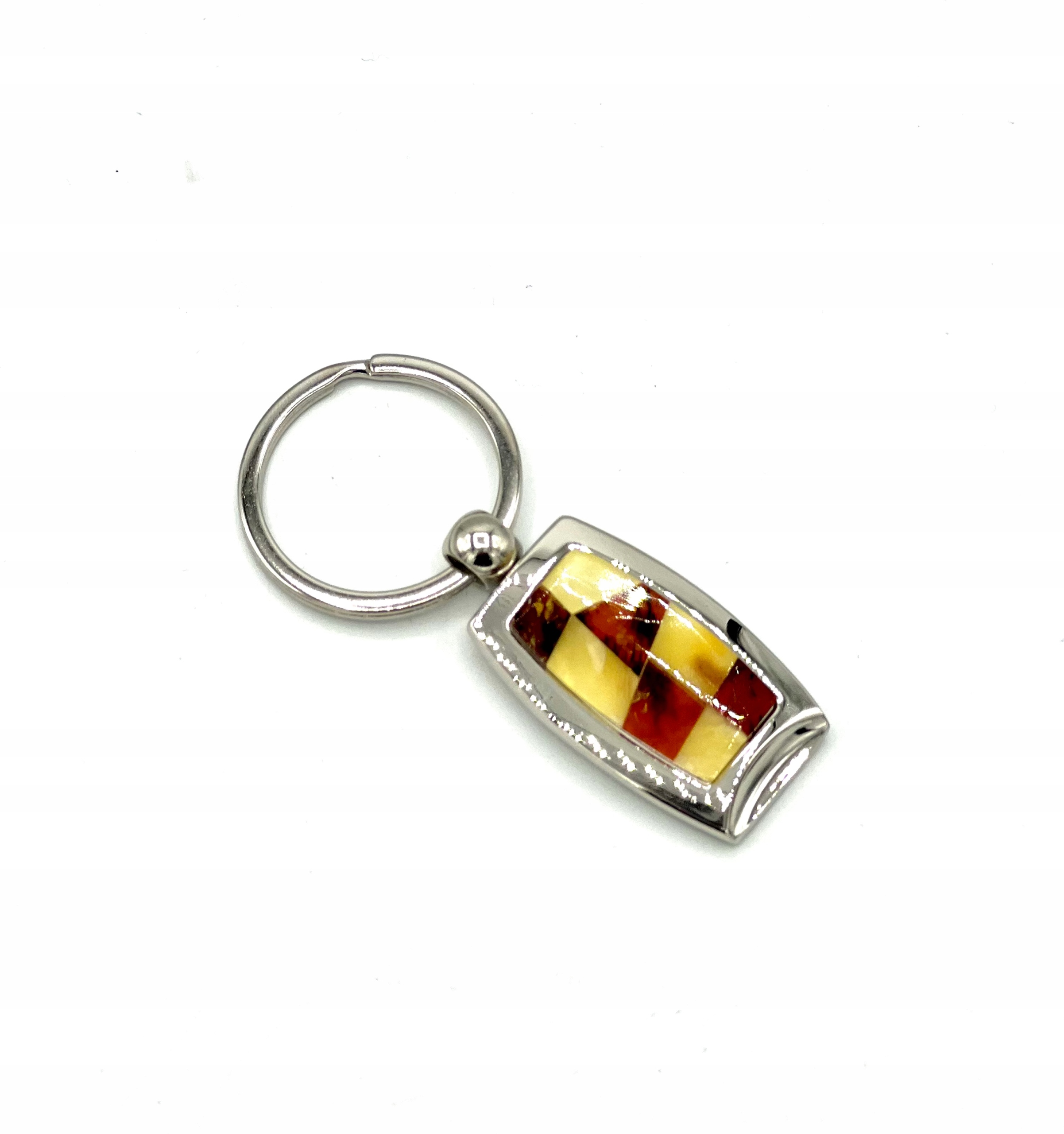 Брелок с янтарной мозаикой из мелких кусочков балтийского янтаря различных цветов.