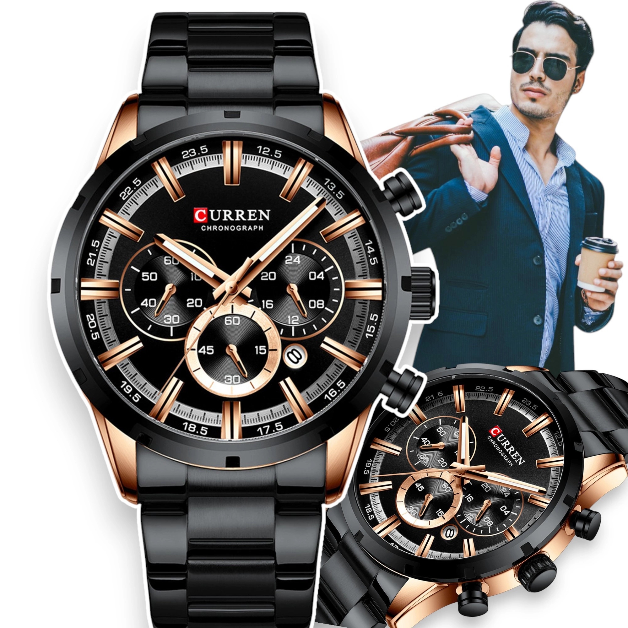 ЭЛЕГАНТНЫЕ МУЖСКИЕ МОДНЫЕ ЧАСЫ С ОТОБРАЖЕНИЕМ ТЕКУЩЕЙ ДАТЫ ХРОНОГРАФ ЯПОНСКИЙ МЕХАНИЗМ