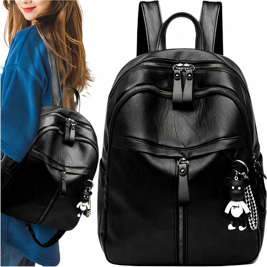ЭЛЕГАНТНЫЙ ЧЕРНЫЙ КОЖАНЫЙ РЮКЗАК «УРБАН РЕТРО» 2 В 1