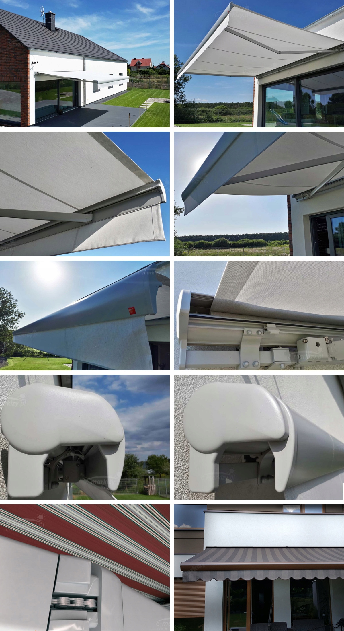 Tares Awning Palladio оснащен встроенной кассетой. Его очень долговечный дизайн позволяет тени в больших размерах. Максимальная ширина составляет 7 м, а охват - даже 3,6 м. У Marquis Palladio Selt есть плотная кассета, которая защищает ткань со всех сторон. Передняя луч, плотно закрывает кассету, создавая отличную защиту для ткани. Основные рычаги тенирования состоит из специального алюминиевого сплава, в котором установлена цепочка флаеров. Вся конструкция Awnings in the Cassette основана на сплошном алюминиевом квадратном луче, который дает некоторую свободу при выборе места прикрепления ручек, а также облегчает установку навеса. Конструкция навеса имеет лаки из техники порошка для пяти стандартных цветов на выбор. Для навеса мы можем при желании установить электрический привод с автоматизацией, светодиодным освещением и передней телескопической поддержкой. терраса или балкон. Электрический тент может иметь экстренное открытие тента
