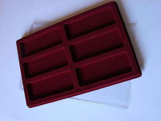 Поддон, предназначенный для размещения 6 предметов, например медалей. Размер окна 95х95 мм. абсолютно новый поддон общими размерами 330х225мм и защелкой из закаленной фольги.