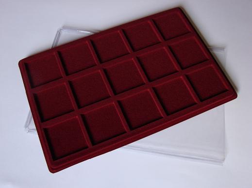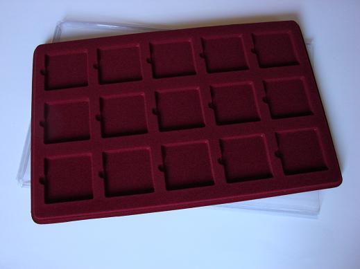 Поддон на 15 монет с зажимом PRL (старого типа), размер окна 57 x 57 мм. Абсолютно новый поддон общими размерами 330х225 мм с защелкой из закаленной фольги.