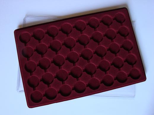 Поддон на 40 монет, размер окна 34 x 34 мм. Поддон совершенно новый, общими размерами 330 х 225 мм, с защелкой из закаленной фольги.