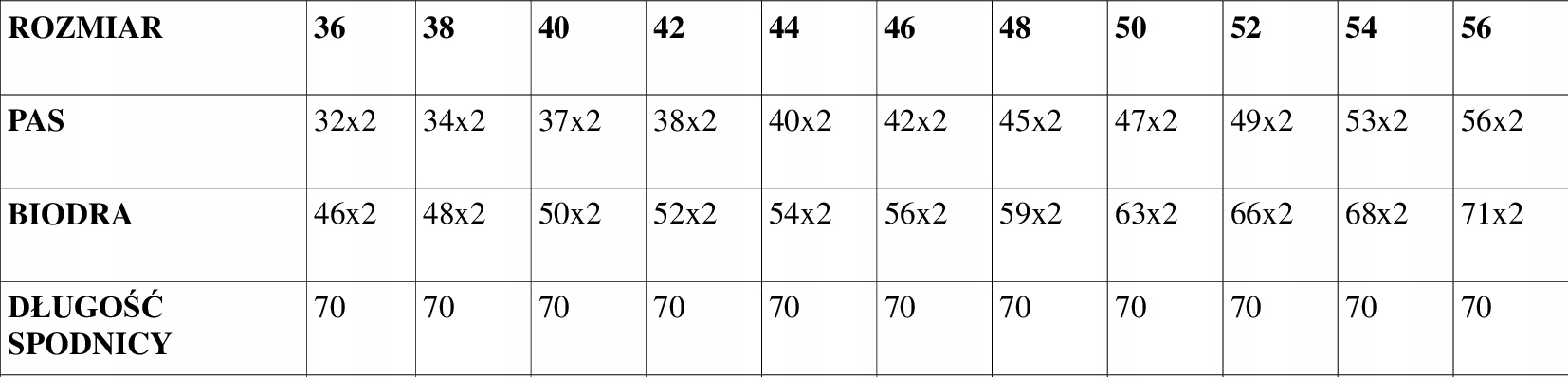 В ТАБЛИЦЕ УКАЗАНЫ РАЗМЕРЫ ЮБКИ БЕЗ РАСТЯЖЕНИЯ