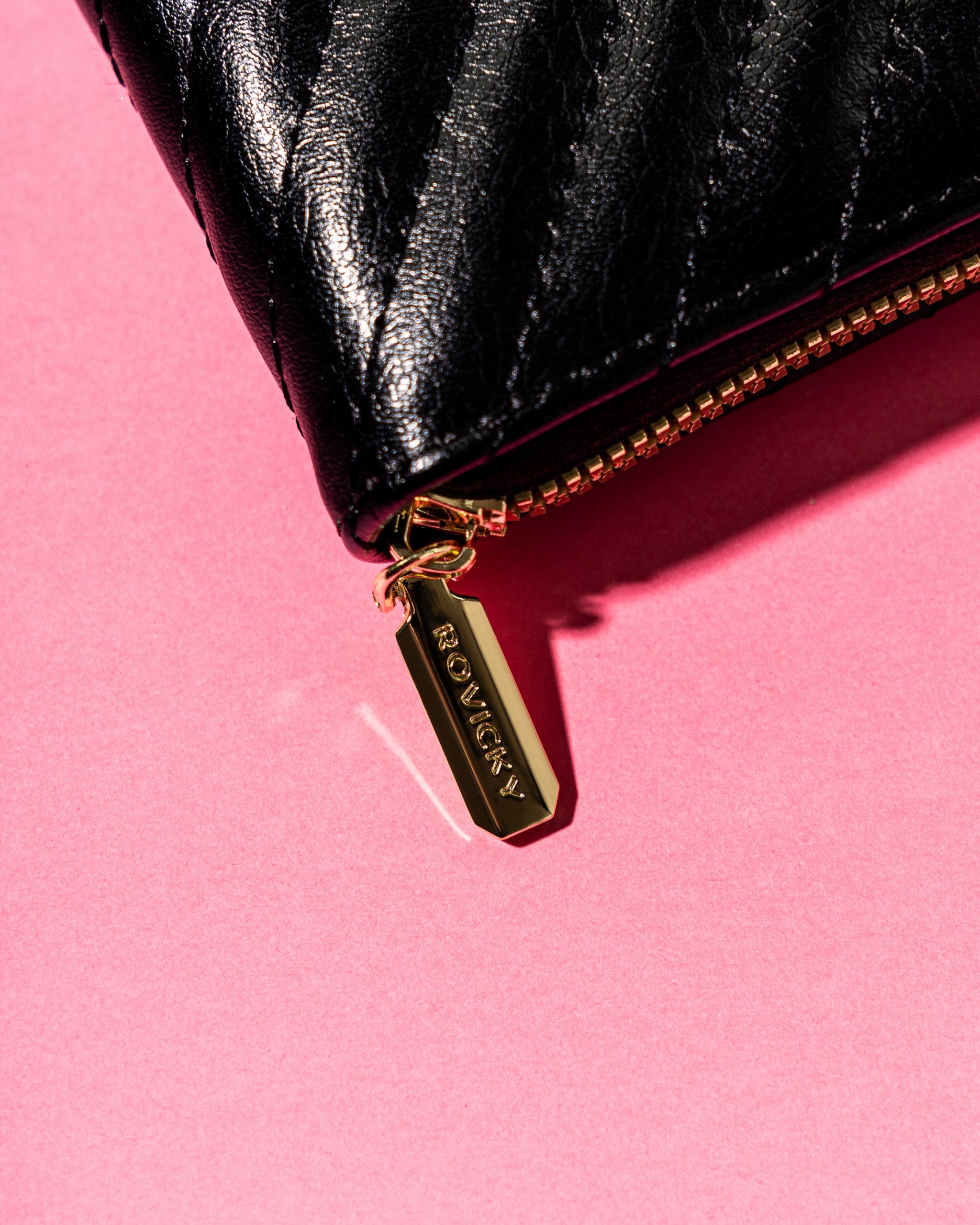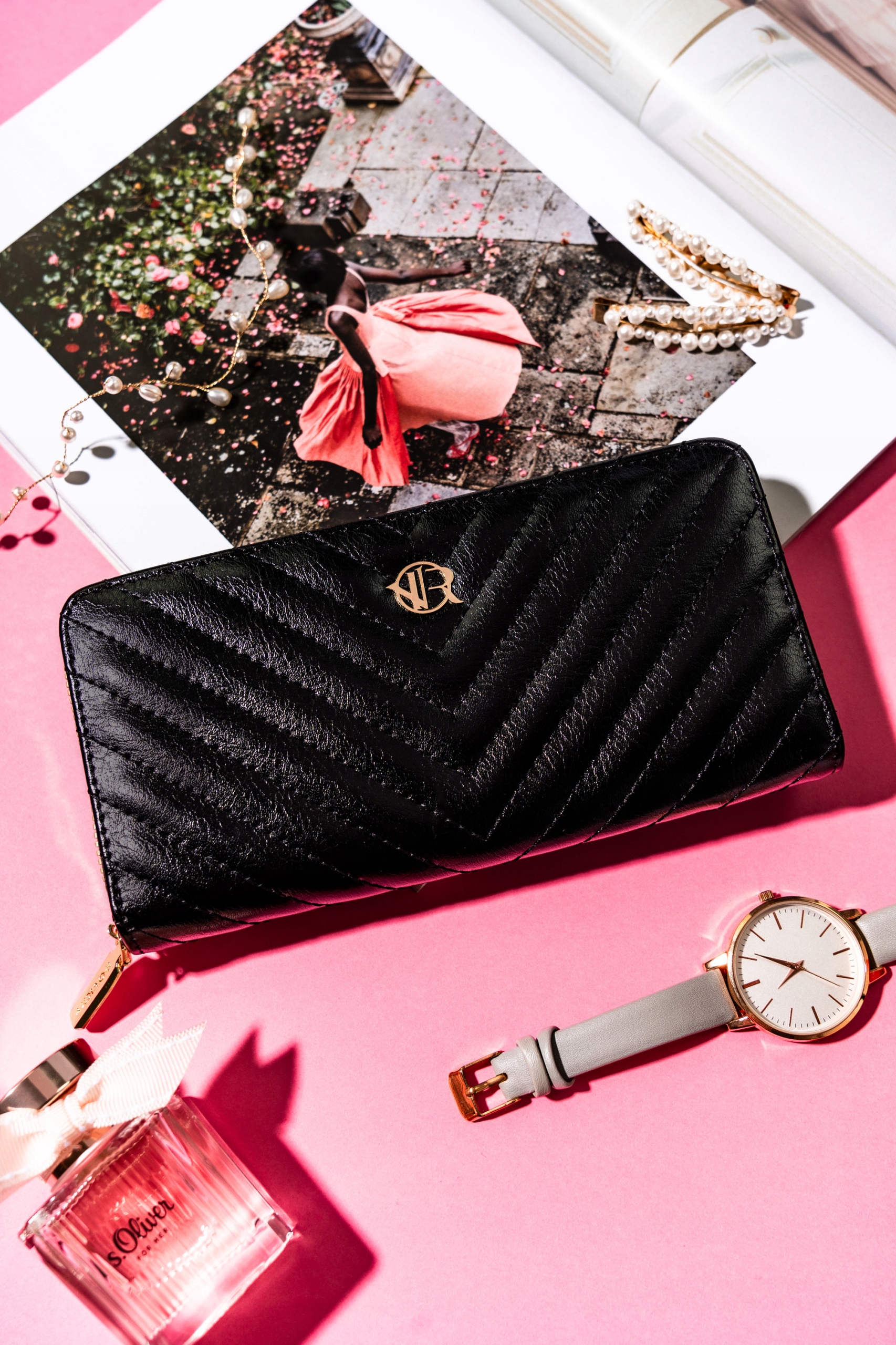 #️⃣ Глубокий черный и золотой | Кошелек впечатляет своей глубокой черной отделкой и элегантными золотыми акцентами, которые добавляют ему престижа.
