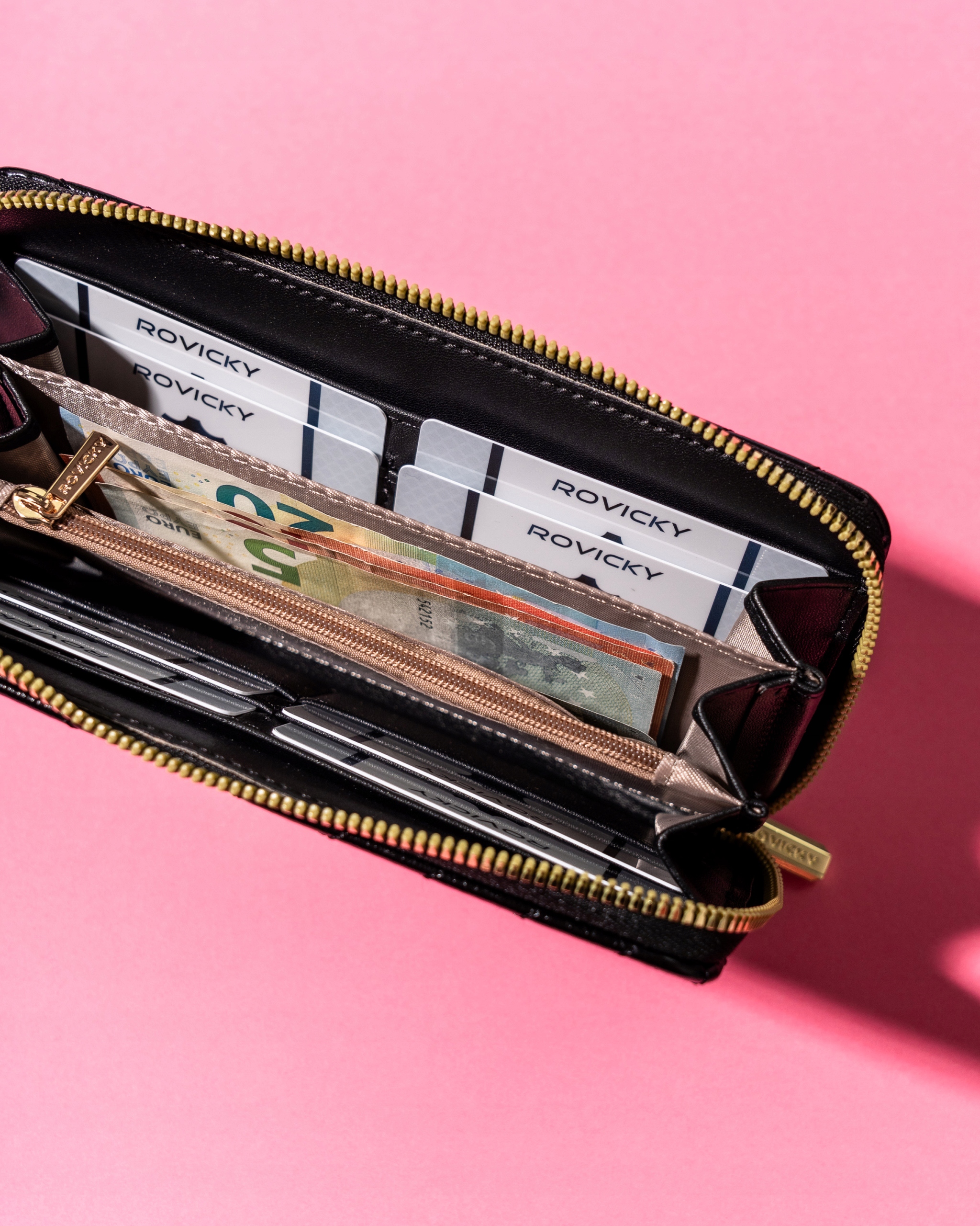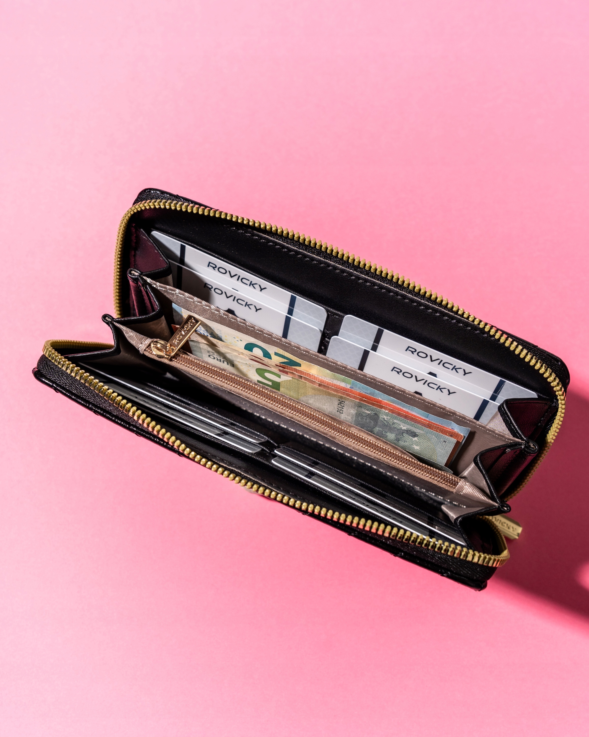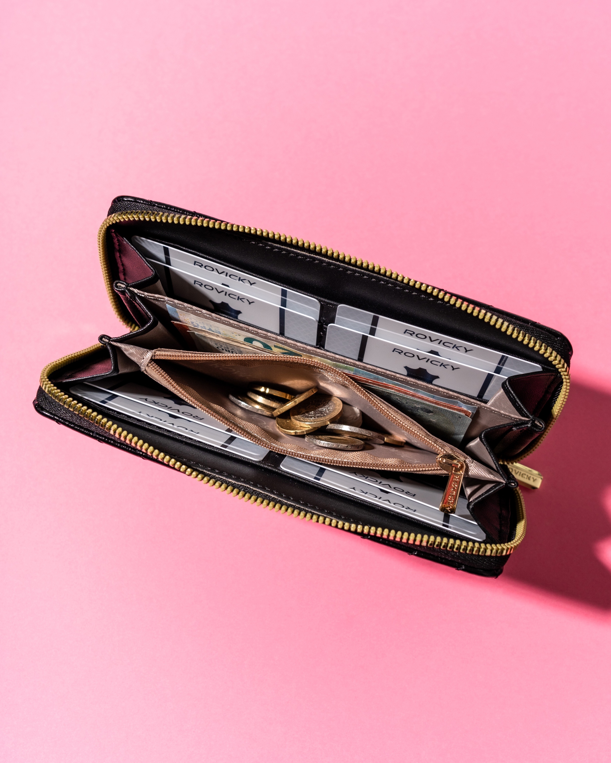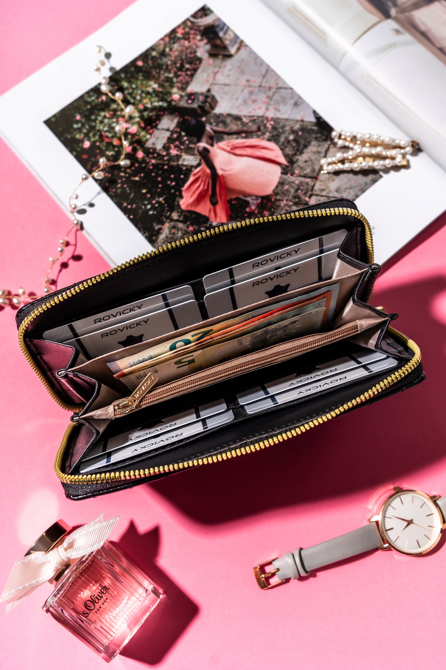 Елегантний жіночий гаманець Rovicky горизонтальний, чорний, модний, функціональний