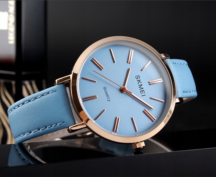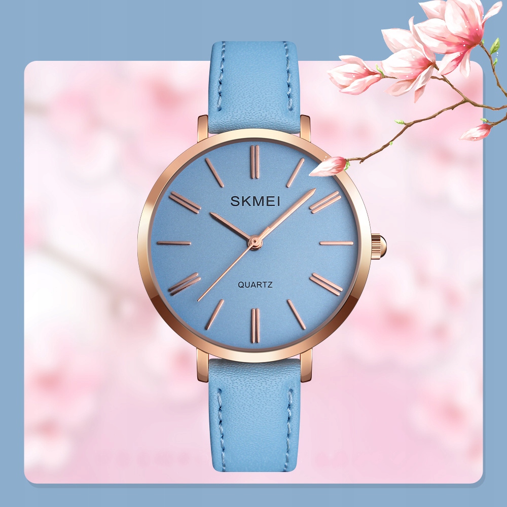 ЭЛЕГАНТНЫЕ ЖЕНСКИЕ ЧАСЫ SKMEI НА КОЖАНОМ РЕМЕШКЕ, РУЧКА, РОЗОВОЕ ЗОЛОТО