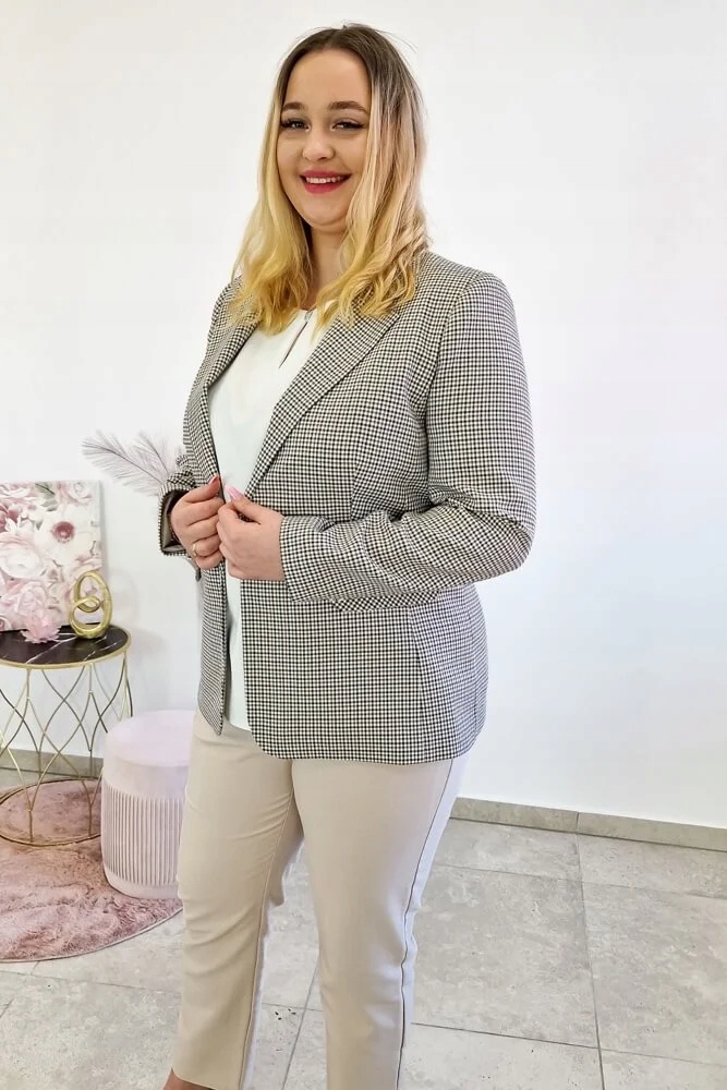 Жакет в черно-карамельную клетку – предложение для женщин, которые ценят классический стиль, но в то же время любят выделяться элегантными узорами. Сочетание глубокого черного цвета с теплым оттенком карамели делает эту модель чрезвычайно шикарной и универсальной. Клетка – узор, который уже много лет доминирует в моде и никогда не теряет своей актуальности, поэтому эта куртка станет идеальным выбором на протяжении многих сезонов. Приталенный крой прекрасно моделирует фигуру, а классическая длина позволяет куртке прекрасно смотреться как в элегантном, так и в повседневном стиле. Длинные рукава можно подвернуть, чтобы создать эффект 3/4, что придает модели легкий и современный вид.