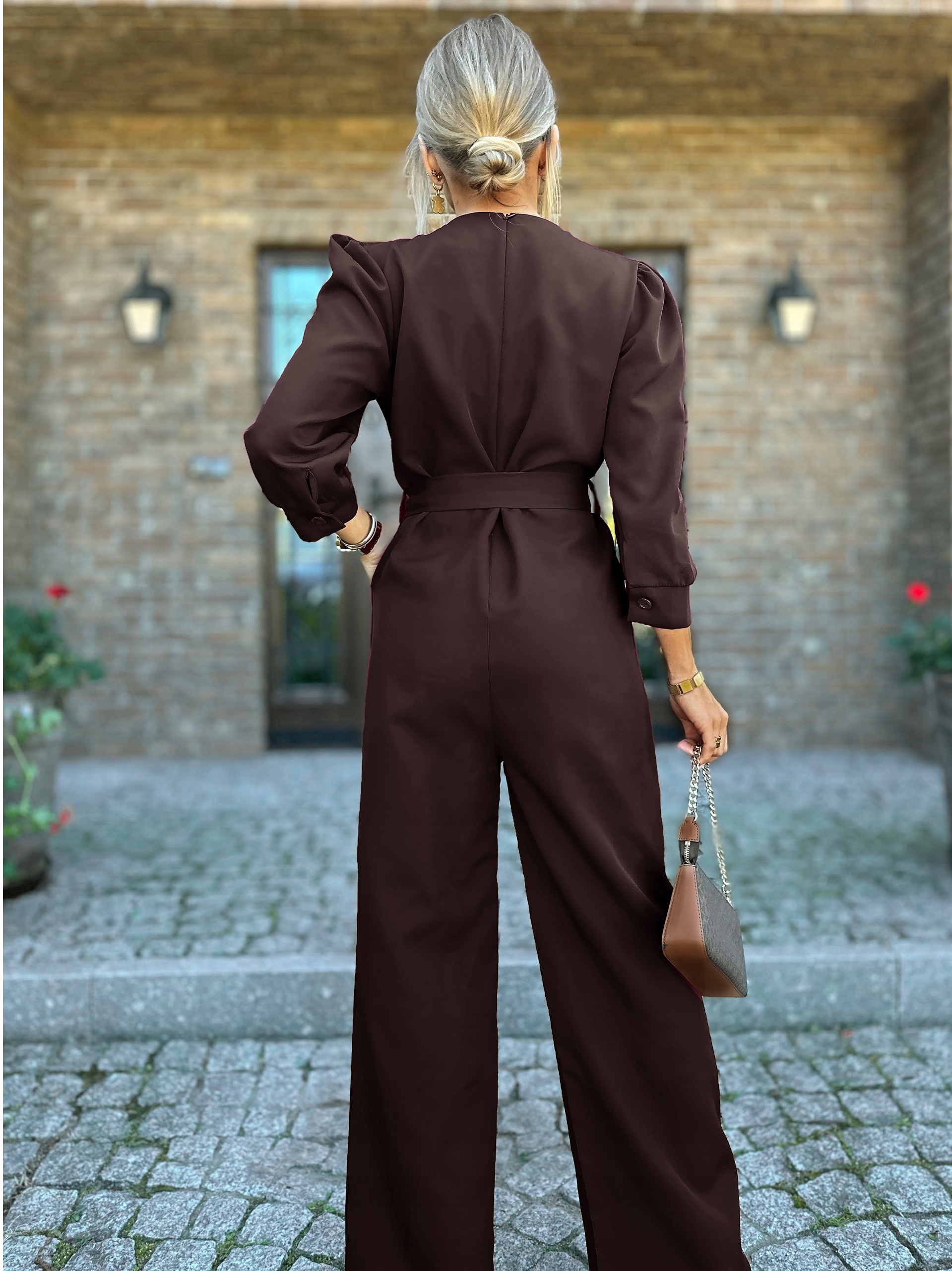 Элегантный женский комбинезон, V-образный вырез, широкие новогодние брюки, L SASHA