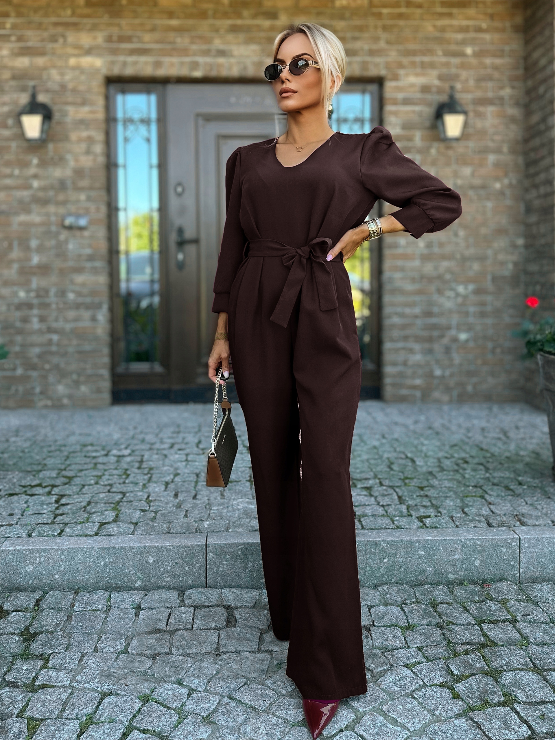 - вырез на талии, имеет тканевый пояс в цвет комбинезона