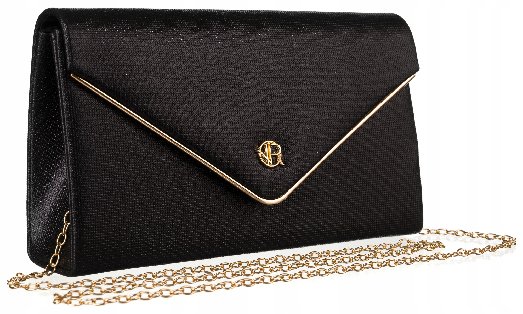 ta Black Women's Clutch Sack - это квинтэссенция стиля и тонкой элегантности. Ее блестящая текстура нежно в свете, добавляя великолепие любой стилизации. Лоскут украшен изысканной золотой отделкой в форме буквы V и небольшим логотипом, который привлекает внимание его минимализмом.